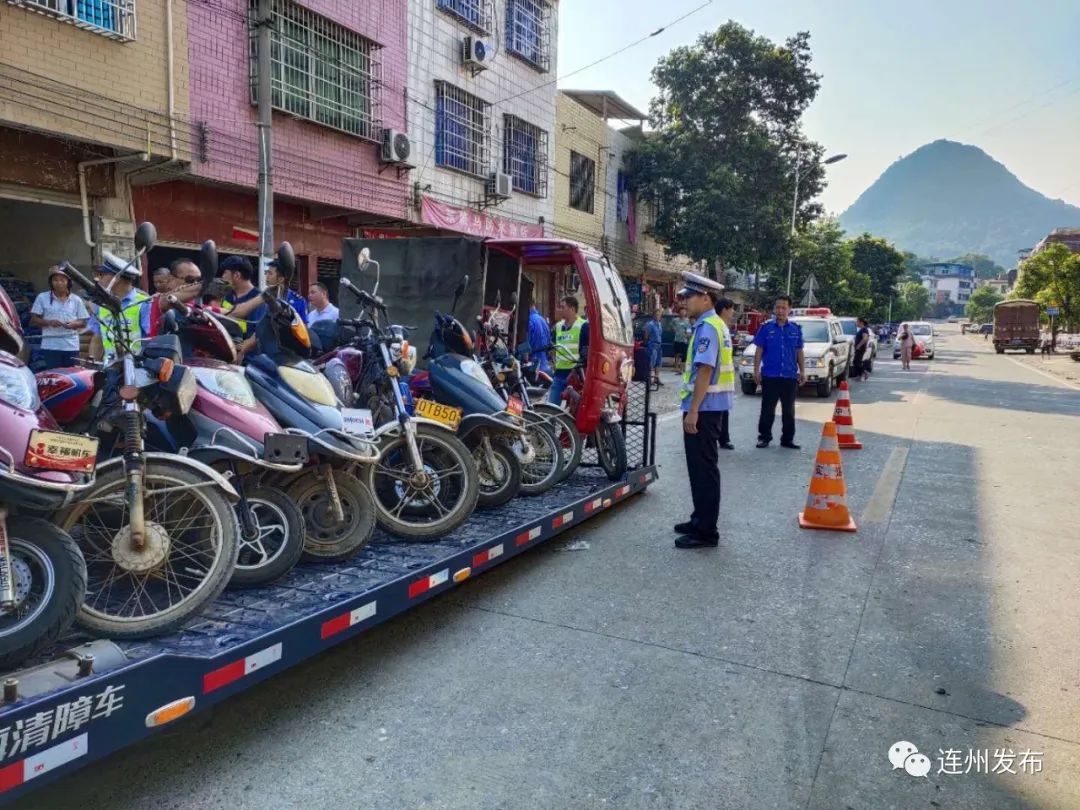 連州鎮(zhèn)黨委副書記、鎮(zhèn)長(zhǎng)陳超文、鎮(zhèn)人大主席黃運(yùn)洪、交警中隊(duì)長(zhǎng)羅小明等到場(chǎng)指揮現(xiàn)場(chǎng)執(zhí)法工作。