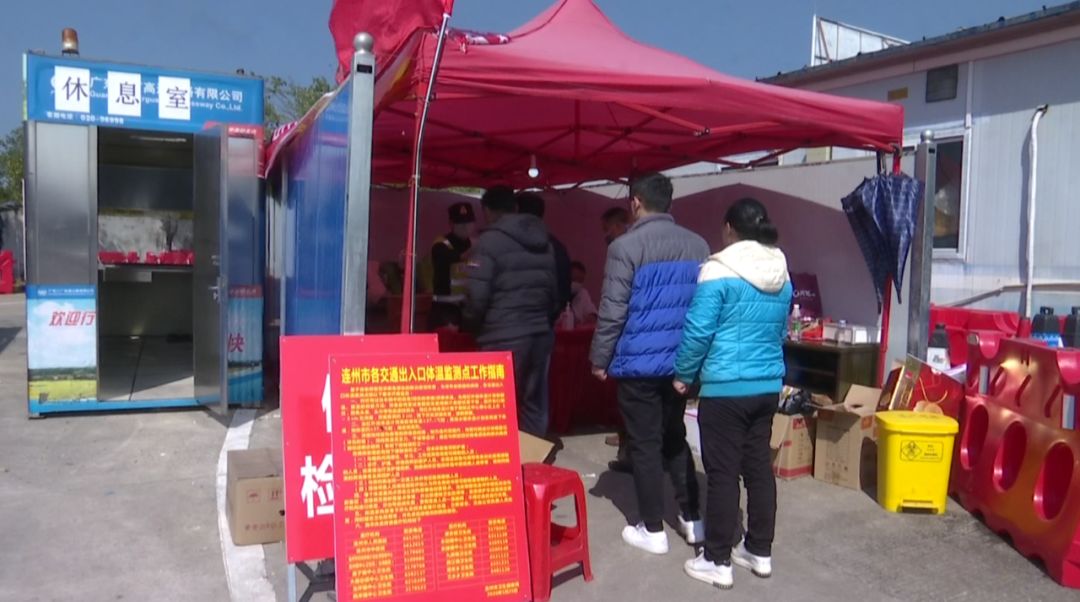 交通防疫檢測點工作人員 復(fù)檢是因為現(xiàn)在太陽溫度高,車內(nèi)沒開空調(diào)比較熱,體溫會比較高一點,過來這里休息一下,出來走一下,我們再檢測,沒問題就可以放行,如果有事,就要在隔離亭里休息,拿溫度計來計量。