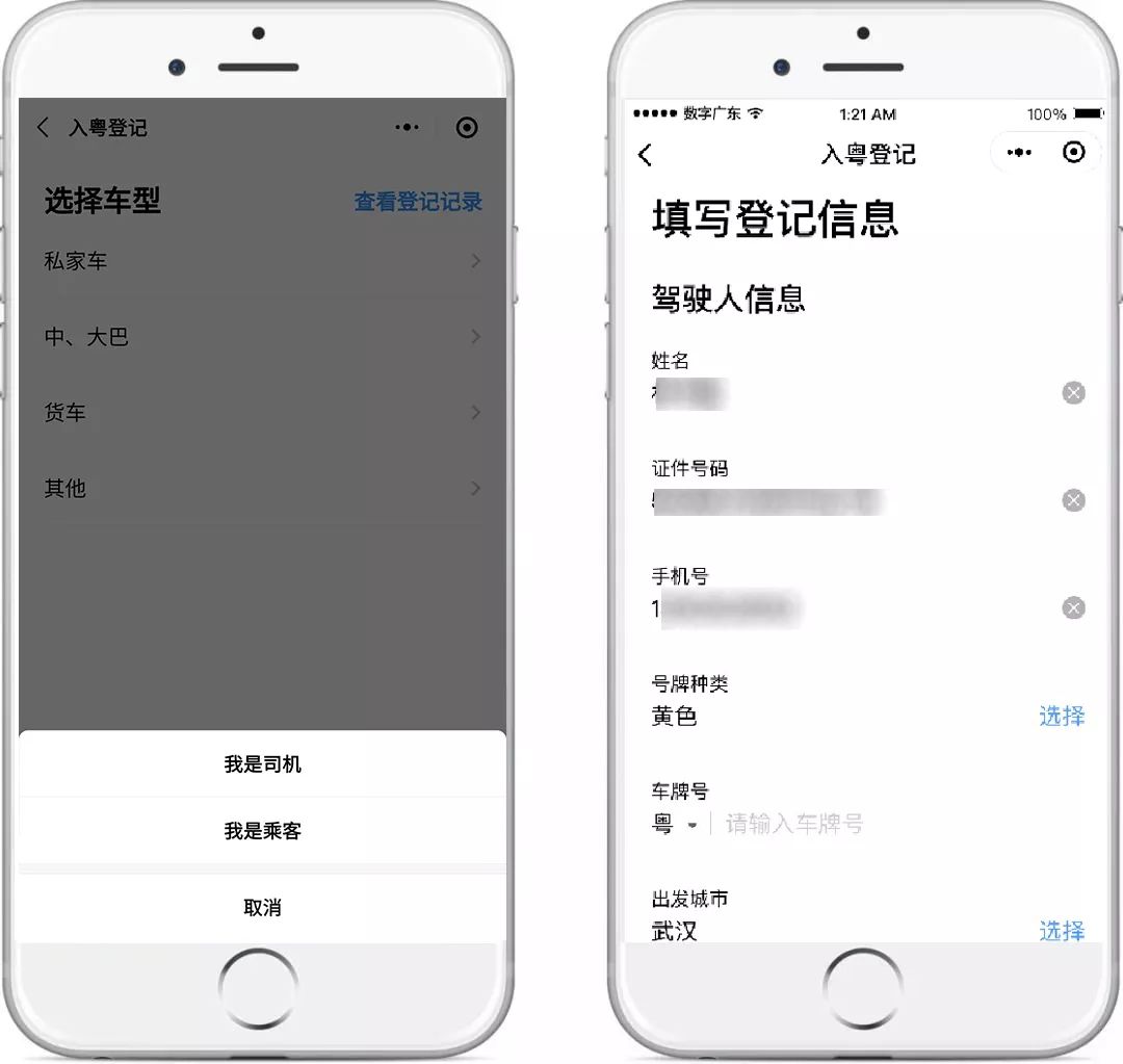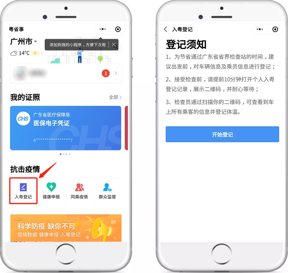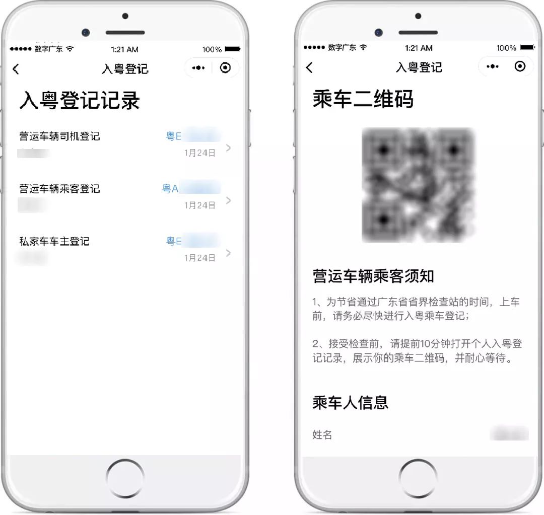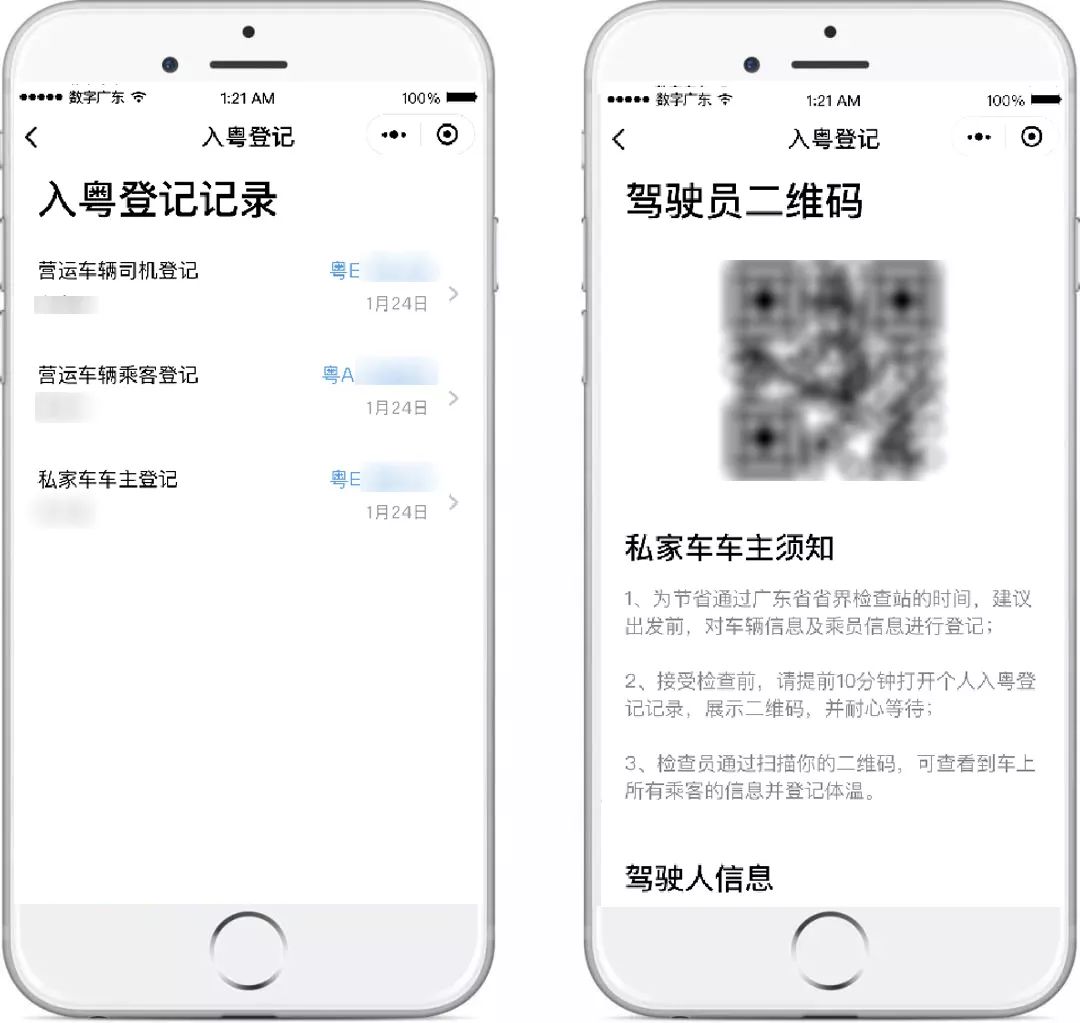 粵省事“疫情防控服務(wù)專(zhuān)區(qū)” 新增“入粵登記”服務(wù) 【“入粵登記”服務(wù)】 “入粵登記”服務(wù)主要面向外來(lái)入粵的司機(jī)、乘客群體,在進(jìn)入廣東省時(shí)登記個(gè)人信息并記錄體溫。 所有進(jìn)入廣東省內(nèi)的司機(jī)乘客都需要進(jìn)行登記,其中: 1、私家車(chē)、貨車(chē)、其他車(chē)輛由司機(jī)填寫(xiě)入粵登記,如有同乘人,則由司機(jī)一同登記。 2、中巴、大巴等營(yíng)運(yùn)車(chē)輛,司機(jī)與乘客分別填寫(xiě)入粵登記,如有不便操作的乘客,可由同行人代填。 為節(jié)省通過(guò)廣東省省界檢查站的時(shí)間,建議出發(fā)前應(yīng)提前對(duì)車(chē)輛信息及乘員信息進(jìn)行登記,并在進(jìn)入防疫站檢測(cè)前提前打開(kāi)二維碼界面,以節(jié)省核驗(yàn)檢查時(shí)間。 點(diǎn)擊上方圖片 保存或轉(zhuǎn)發(fā)“入粵登記”流程 給身邊的人 一起提前登記,快速通過(guò)防疫站 下面一起來(lái)看看 “入粵登記”的詳細(xì)操作介紹 和常見(jiàn)問(wèn)題解答吧 “入粵登記”服務(wù)入口 (1)微信搜索進(jìn)入“粵省事”小程序,首頁(yè)“抗擊疫情”版塊,點(diǎn)擊“入粵登記”服務(wù)。 (2)微信搜索進(jìn)入“粵省事”小程序,下滑至“專(zhuān)區(qū)”版塊點(diǎn)擊進(jìn)入“疫情防控服務(wù)專(zhuān)區(qū)”,或直接點(diǎn)擊下方圖片進(jìn)入專(zhuān)區(qū)。 進(jìn)入“疫情防控服務(wù)專(zhuān)區(qū)”后,下滑點(diǎn)擊“入粵登記”,司機(jī)或乘客可根據(jù)實(shí)際情況選擇類(lèi)型進(jìn)入登記。后續(xù)可從該界面右上角“查看登記記錄”進(jìn)入找到相關(guān)登記記錄。 私家車(chē)/貨車(chē)/其他車(chē)輛 駕駛?cè)嗽诔霭l(fā)前,點(diǎn)擊進(jìn)入“入粵登記”服務(wù),選擇相應(yīng)的車(chē)輛類(lèi)型,閱讀服務(wù)須知后填寫(xiě)駕駛?cè)诵畔ⅲㄗ⒁鉁?zhǔn)確填寫(xiě)號(hào)牌種類(lèi)),如獨(dú)自駕駛,確認(rèn)無(wú)誤后可直接提交。 如車(chē)上有同行乘客,需一并填報(bào)同乘人員信息,點(diǎn)擊“錄入同乘人信息”,可添加多位乘客信息。添加完畢后確認(rèn)信息并提交即可。 到達(dá)檢查站,駕駛員在“粵省事”的“入粵登記記錄”找到對(duì)應(yīng)記錄,出示對(duì)應(yīng)乘車(chē)二維碼,檢查員掃碼核驗(yàn),待檢查員測(cè)量全車(chē)人員體溫、提交信息后通過(guò)。 中大巴司機(jī) 駕駛員出發(fā)前,進(jìn)入“入粵登記”服務(wù),點(diǎn)擊“中、大巴”選擇“司機(jī)”,并填寫(xiě)登記信息(注意準(zhǔn)確填寫(xiě)號(hào)牌種類(lèi)),確認(rèn)無(wú)誤后可提交。 到達(dá)檢查站,駕駛員進(jìn)入“入粵登記”服務(wù),點(diǎn)擊右上角“查看記錄”找到對(duì)應(yīng)記錄,點(diǎn)擊相應(yīng)車(chē)牌,出示對(duì)應(yīng)乘車(chē)二維碼給檢查員核驗(yàn),待檢查員測(cè)量體溫、提交信息后通過(guò)。 如有乘客詢(xún)問(wèn)班次行程碼也可從此進(jìn)入獲取。 中、大巴車(chē)乘客 乘客在出發(fā)前向司機(jī)索取班次行程碼及車(chē)牌號(hào),進(jìn)入“入粵登記”服務(wù),點(diǎn)擊“中、大巴登記”選擇“乘客”,填入班次行程碼及車(chē)牌號(hào)。 填寫(xiě)乘客登記信息,確認(rèn)無(wú)誤后可提交。 到達(dá)檢查站后,乘客在“入粵登記”服務(wù),點(diǎn)擊右上角“查看記錄”找到對(duì)應(yīng)記錄,點(diǎn)擊當(dāng)次乘坐的對(duì)應(yīng)車(chē)牌,出示對(duì)應(yīng)乘車(chē)二維碼給檢查員核驗(yàn),待檢查員測(cè)量體溫、提交信息后通過(guò)。 常見(jiàn)問(wèn)題答疑 Q:是否支持代辦? 私家車(chē)/貨車(chē)/其他類(lèi)型車(chē)輛需由司機(jī)統(tǒng)一代全車(chē)人員辦理;中、大巴車(chē)乘客如有多人同行,可由同行人代為辦理。 Q:支持哪些人士辦理,有無(wú)戶籍、城市等限制? 支持持有有效二代居民身份證的用戶實(shí)名認(rèn)證后辦理,無(wú)城市、戶籍限制,暫不支持港澳、臺(tái)灣人士及外籍人士辦理,因此如遇嬰幼兒乘客、港澳人士、臺(tái)灣人士、外籍人士等人群,敬請(qǐng)咨詢(xún)檢查員其他處理方法。 Q:本人如上報(bào)多次記錄以哪條為準(zhǔn)? 以用戶出示的二維碼對(duì)應(yīng)的記錄為準(zhǔn)。 Q:如提交失敗如何處理? 請(qǐng)確認(rèn)是否網(wǎng)絡(luò)導(dǎo)致,建議切換網(wǎng)絡(luò)或前往良好的網(wǎng)絡(luò)環(huán)境再作嘗試。 Q:在粵省事使用微信支付密碼登錄安全嗎? “粵省事”為廣東省人民政府主辦的移動(dòng)政務(wù)服務(wù)平臺(tái),保障您的信息安全,本次使用微信支付密碼登錄,僅為了讓您快速實(shí)名認(rèn)證辦理“入粵登記”服務(wù),請(qǐng)放心使用。 Q:從省外入粵,先到廣東A地,再到廣東B地,怎么填? 填寫(xiě)A地,即初始進(jìn)入廣東省界所在地市為準(zhǔn)。 Q:本來(lái)就是粵牌車(chē),從省外入粵是否還要登記? 為加強(qiáng)疫情防控,凡進(jìn)入廣東省界車(chē)輛請(qǐng)按照有關(guān)政策辦理入粵登記。 Q:提前幾天登記可以嗎?現(xiàn)在登記什么時(shí)候入粵都可以嗎? 如您已確認(rèn)行程,為保證您順暢通行,建議您可提前辦理入粵登記。 Q:不登記可以入廣東嗎?? 為加強(qiáng)疫情防控,建議您辦理入粵登記,如因特殊原因無(wú)法辦理,請(qǐng)