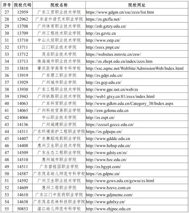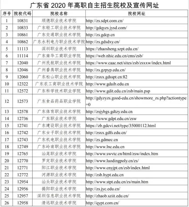 附2020年廣東高職自招招生院校名單