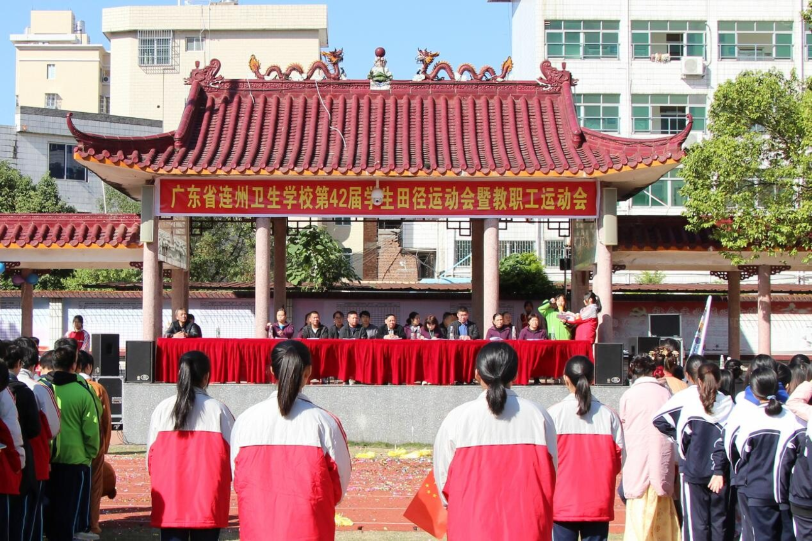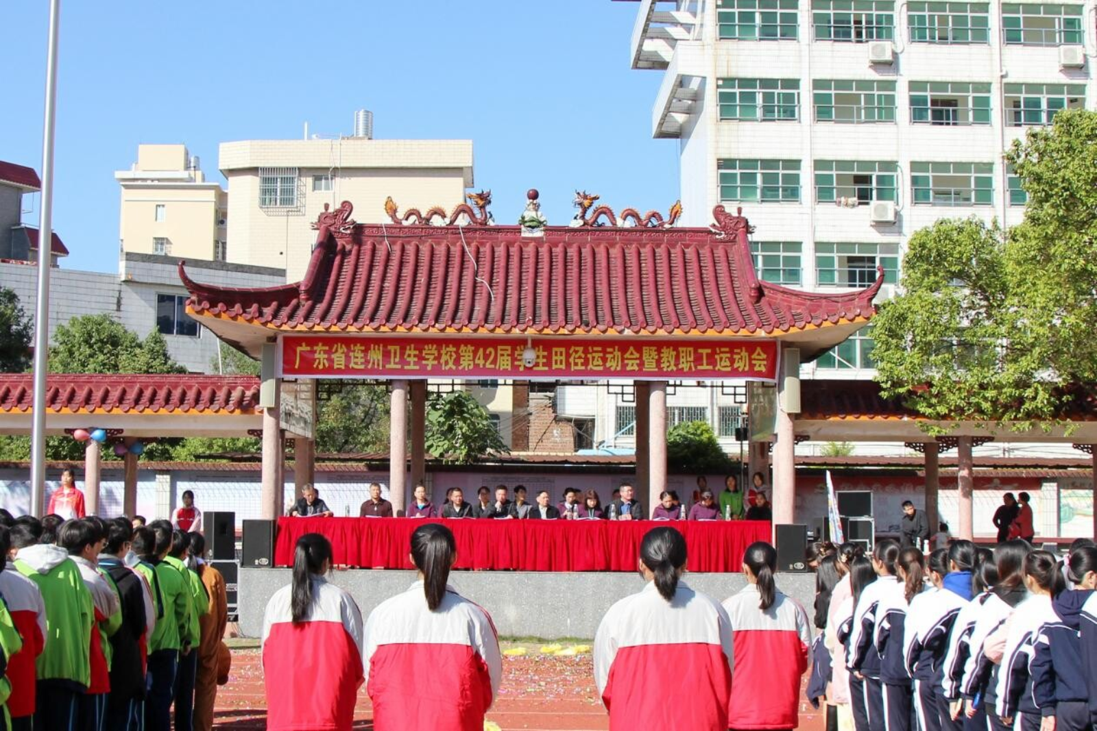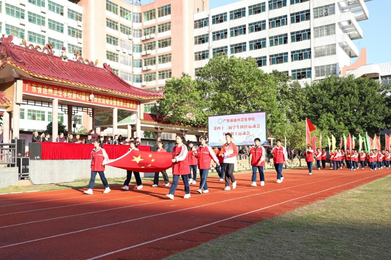 “希望通過這屆運動會,每一位同學(xué)都能領(lǐng)會體育的內(nèi)涵和精神,祝所有參加運動會的同學(xué)能夠取得一個好的成績。最后,我愿以自豪之情、真誠之心,祝愿本屆運動會圓滿成功。”11月10日上午,連州衛(wèi)校副校長唐英輝宣布,連州衛(wèi)校第四十二屆田徑運動會開幕。