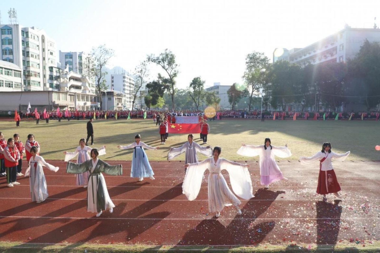 開幕式上,紅旗隨風(fēng)飄揚,各代表隊精神抖擻,一片朝氣蓬勃的景象。每個班級通過精彩的舞蹈和才藝展示,用動感的音樂、熱辣的舞蹈燃爆全場,為大家獻上一場精彩的視覺盛宴,充分展現(xiàn)連州衛(wèi)校學(xué)子動人的青春風(fēng)采,引得全體師生陣陣歡呼。