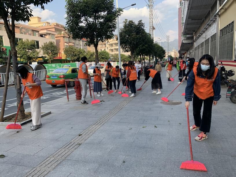 廣東省連州衛(wèi)生學校黨團志愿者清掃街道