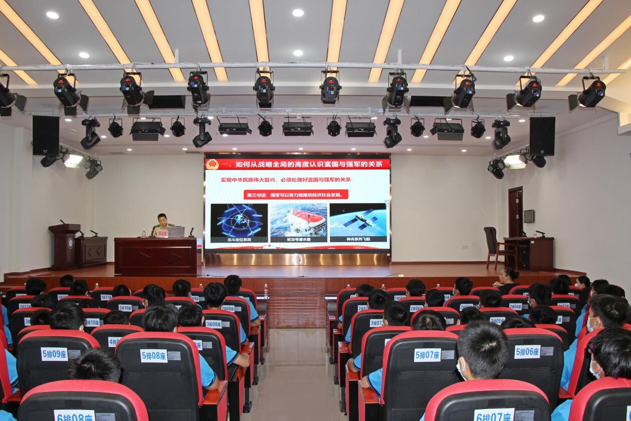 陳志前同志,在此次講座中運(yùn)用圖文并茂的方式,向大家講述了四個(gè)板塊的內(nèi)容:一、如何從戰(zhàn)略全局的高度認(rèn)識(shí)富國(guó)與強(qiáng)國(guó)的關(guān)系;二、我國(guó)地緣情況及周邊安全形勢(shì);三、臺(tái)海形勢(shì);四、鼓勵(lì)青年學(xué)子要踴躍報(bào)名參軍,在國(guó)防和軍隊(duì)建設(shè)中實(shí)現(xiàn)人生理想。