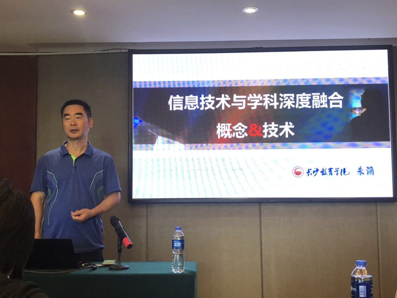 下午,湖南省信息技術(shù)提升培訓(xùn)專(zhuān)家、長(zhǎng)沙教育學(xué)院副教授、長(zhǎng)沙市中小學(xué)教師信息技術(shù)與教育教學(xué)融合研究團(tuán)隊(duì)首席專(zhuān)家朱涌為我市中職學(xué)校40名骨干教師主講了《信息技術(shù)與學(xué)科教學(xué)的深度融合》主題講座。朱涌認(rèn)為在信息化社會(huì)中,教師要將信息技術(shù)與教學(xué)進(jìn)行深度融合,運(yùn)用信息技術(shù)使教學(xué)簡(jiǎn)單化、趣味化,構(gòu)建基于信息技術(shù)的新型教育教學(xué)模式。并提出要打造“智慧教室”,通過(guò)智慧的教與學(xué),促進(jìn)學(xué)生實(shí)現(xiàn)個(gè)性化成長(zhǎng)規(guī)律的智慧發(fā)展。