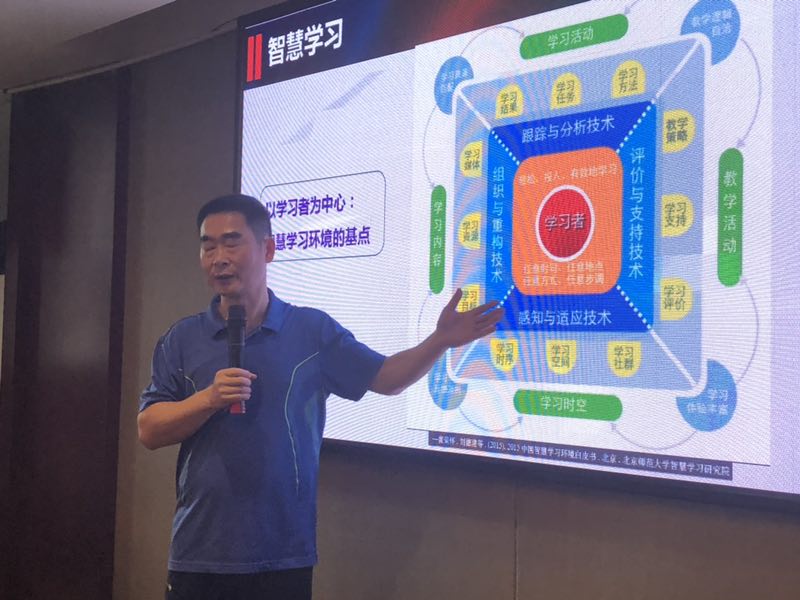 下午,湖南省信息技術(shù)提升培訓(xùn)專(zhuān)家、長(zhǎng)沙教育學(xué)院副教授、長(zhǎng)沙市中小學(xué)教師信息技術(shù)與教育教學(xué)融合研究團(tuán)隊(duì)首席專(zhuān)家朱涌為我市中職學(xué)校40名骨干教師主講了《信息技術(shù)與學(xué)科教學(xué)的深度融合》主題講座。朱認(rèn)為在信息化社會(huì)中,教師要將信息技術(shù)與教學(xué)進(jìn)行深度融合,運(yùn)用信息技術(shù)使教學(xué)簡(jiǎn)單化、趣味化,構(gòu)建基于信息技術(shù)的新型教育教學(xué)模式。并提出要打造“智慧教室”,通過(guò)智慧的教與學(xué),促進(jìn)學(xué)生實(shí)現(xiàn)個(gè)性化成長(zhǎng)規(guī)律的智慧發(fā)展。