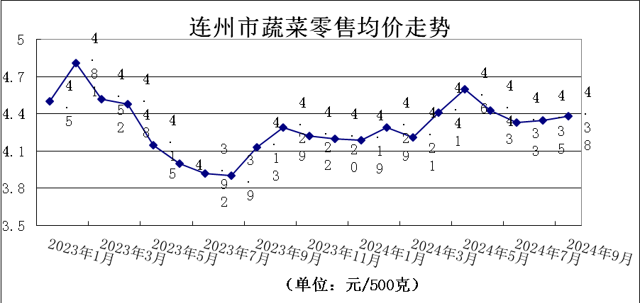 9月份,我市蔬菜價格微升,農(nóng)貿(mào)市場監(jiān)測的30種主要蔬菜零售價格“15升5平10降”,蔬菜類平均零售價格為4.38元/500克,環(huán)比升0.69%。其中,葉菜類零售價格為4.45元/500克,環(huán)比升1.14%,花菜類零售價格為3.96元/500克,環(huán)比升6.17%,瓜菜類零售價格為4.20元/500克,環(huán)比降0.24%,根莖類零售價格為4.65元/500克,環(huán)比降0.21%。