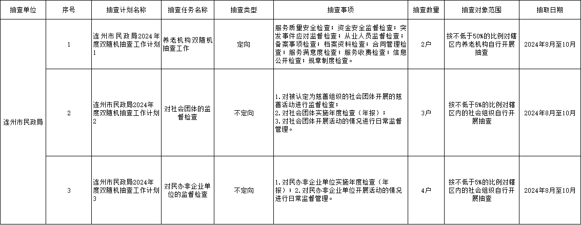 連州市民政局2024年度雙隨機(jī)抽查工作計劃