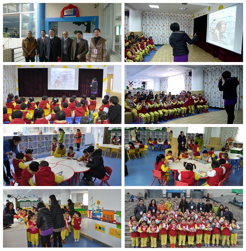 ????由香港熱心人士黃錫華夫婦捐助我館建設的華蘭僑心親子閱讀室,12月23日正式向3一6歲的兒童及其家長免費開放。黃錫華先生、清遠市僑聯(lián)副主席黃國雄、連州市政協(xié)副主席葉本榮、連州市僑聯(lián)主席陳自好、連州市文化廣電新聞出版局局長唐記南為親子閱讀室揭牌。