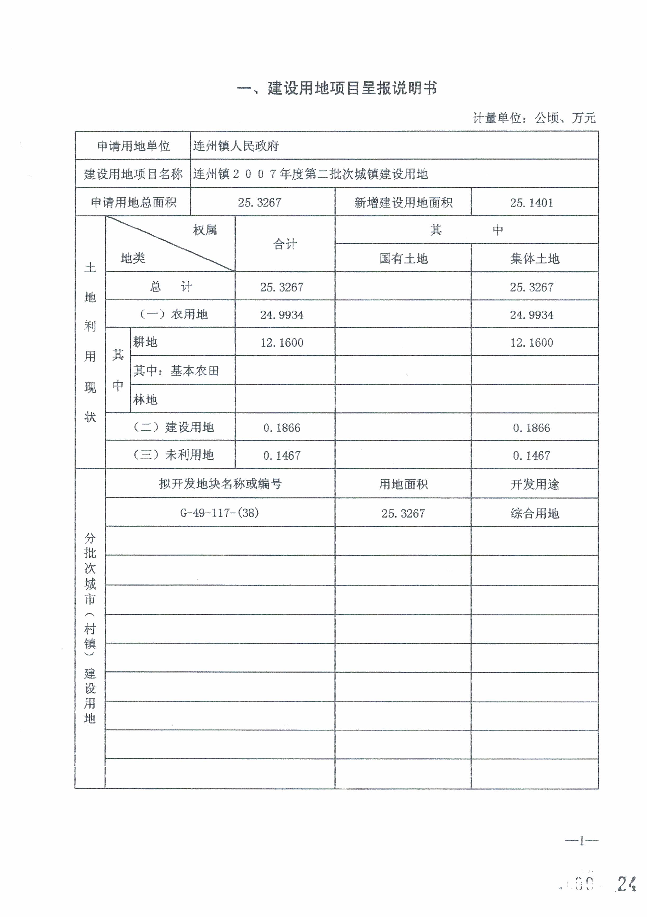 連州市連州鎮(zhèn)2007年度第二批次城鎮(zhèn)建設(shè)用地公告信息(一書(shū)四方案)