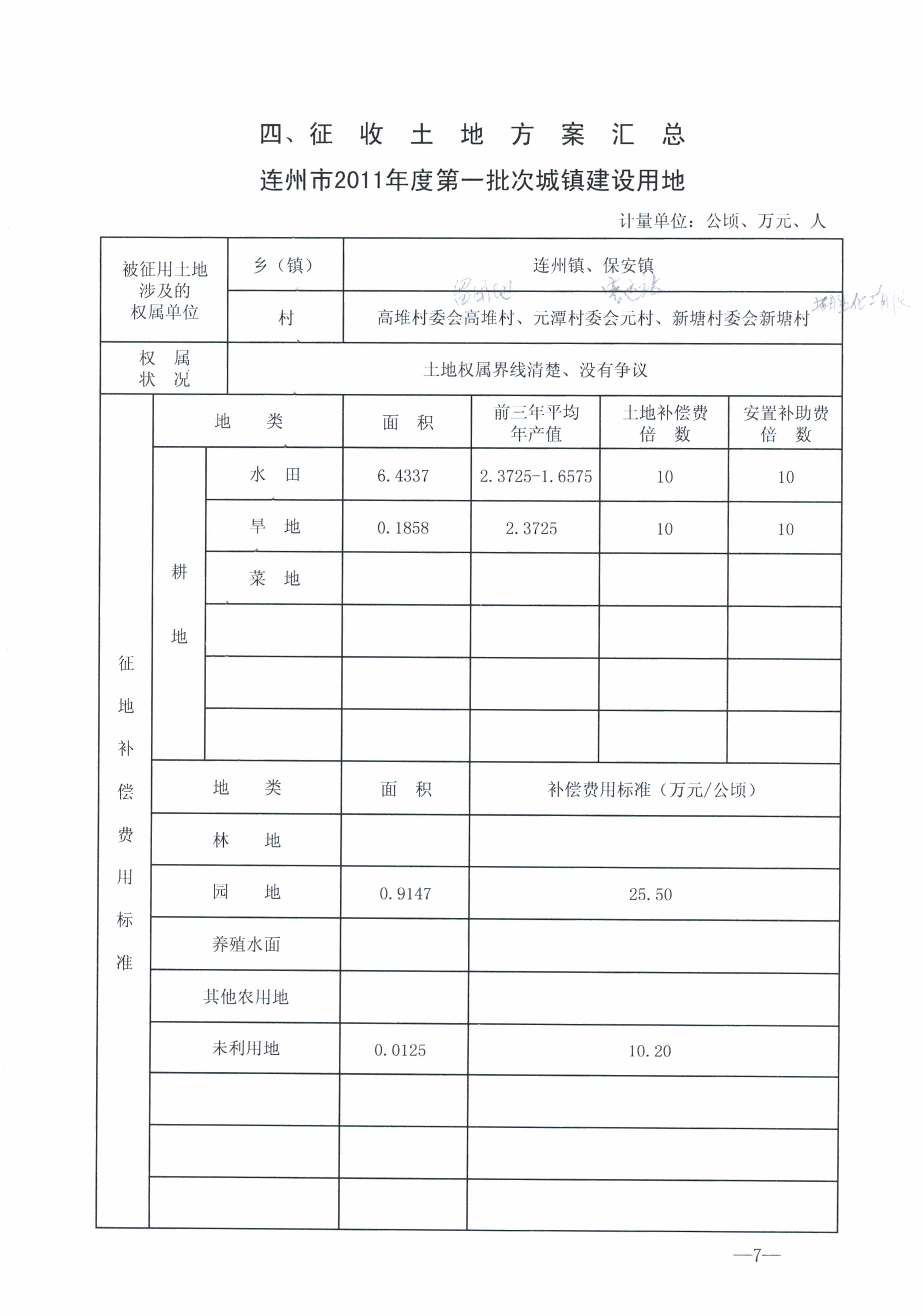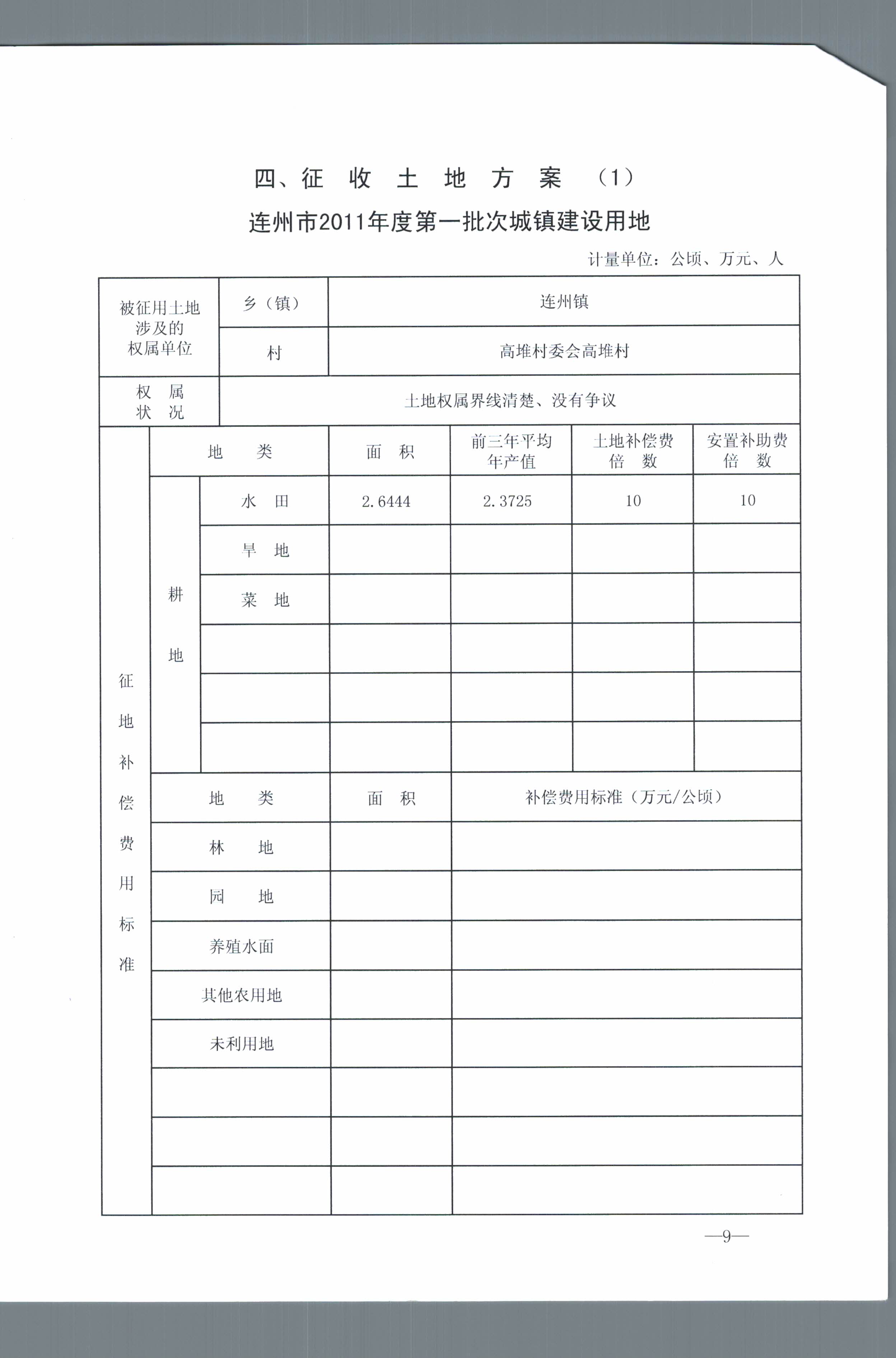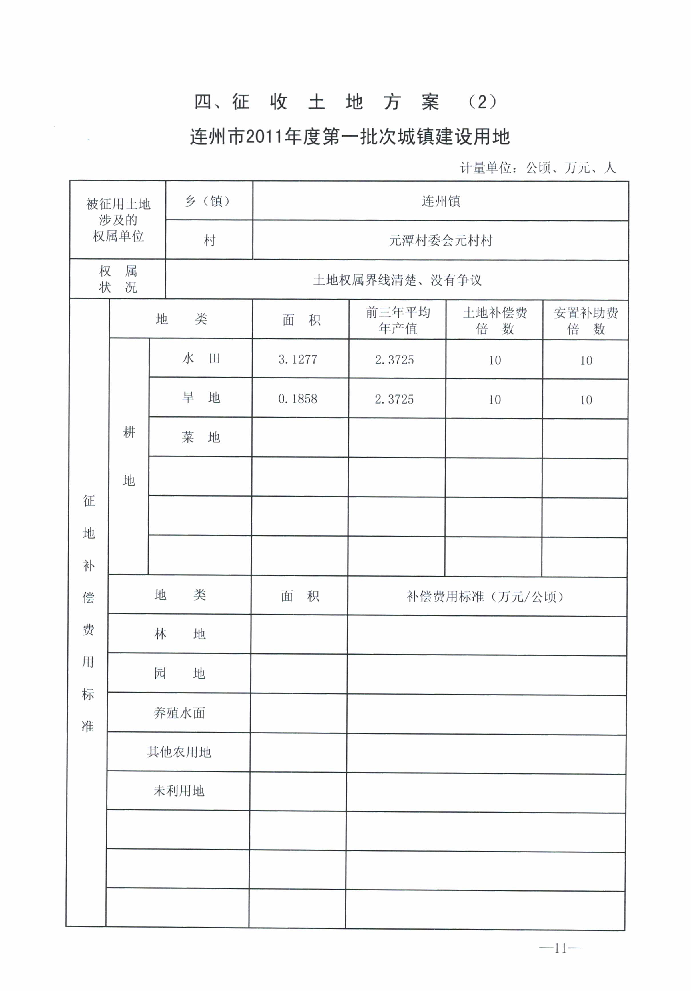 連州市2011年度第一批次城鎮(zhèn)建設(shè)用地公告信息(一書四方案)