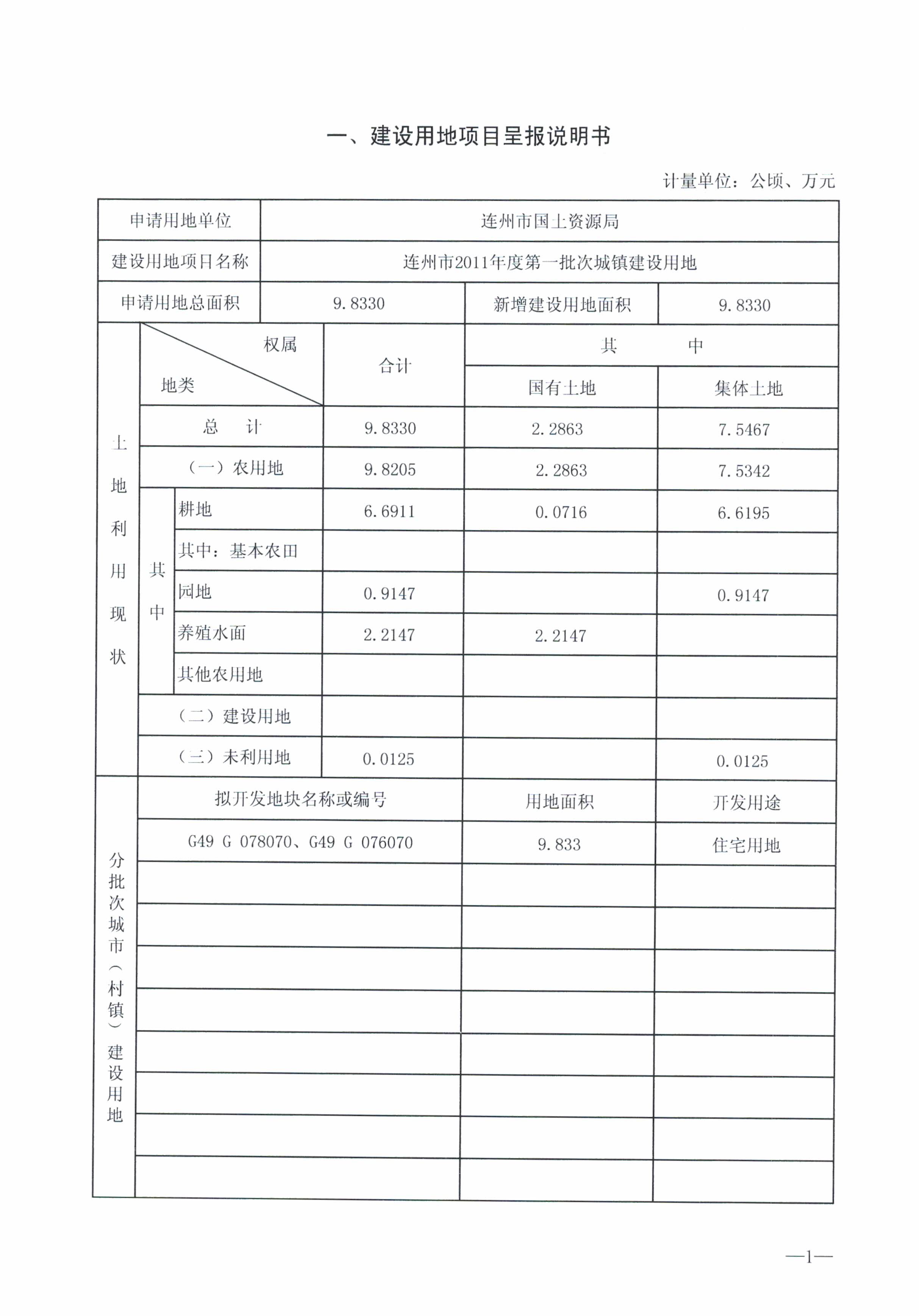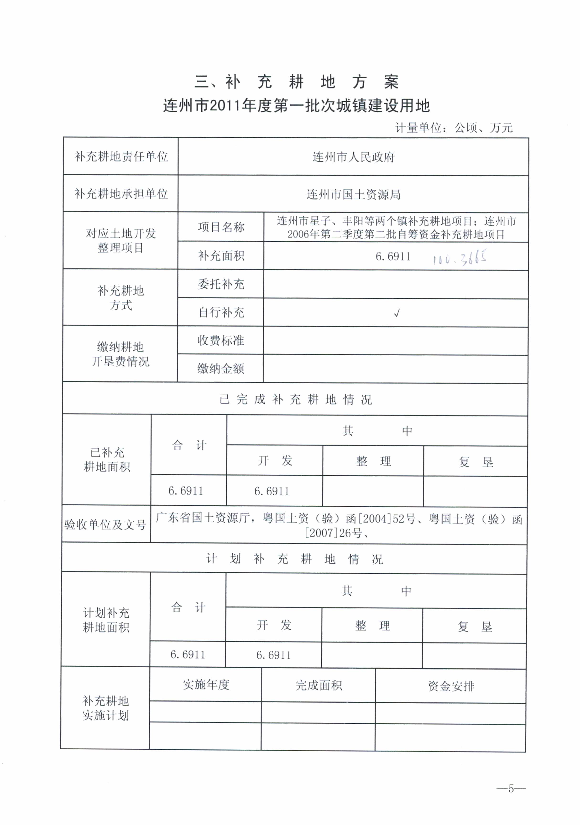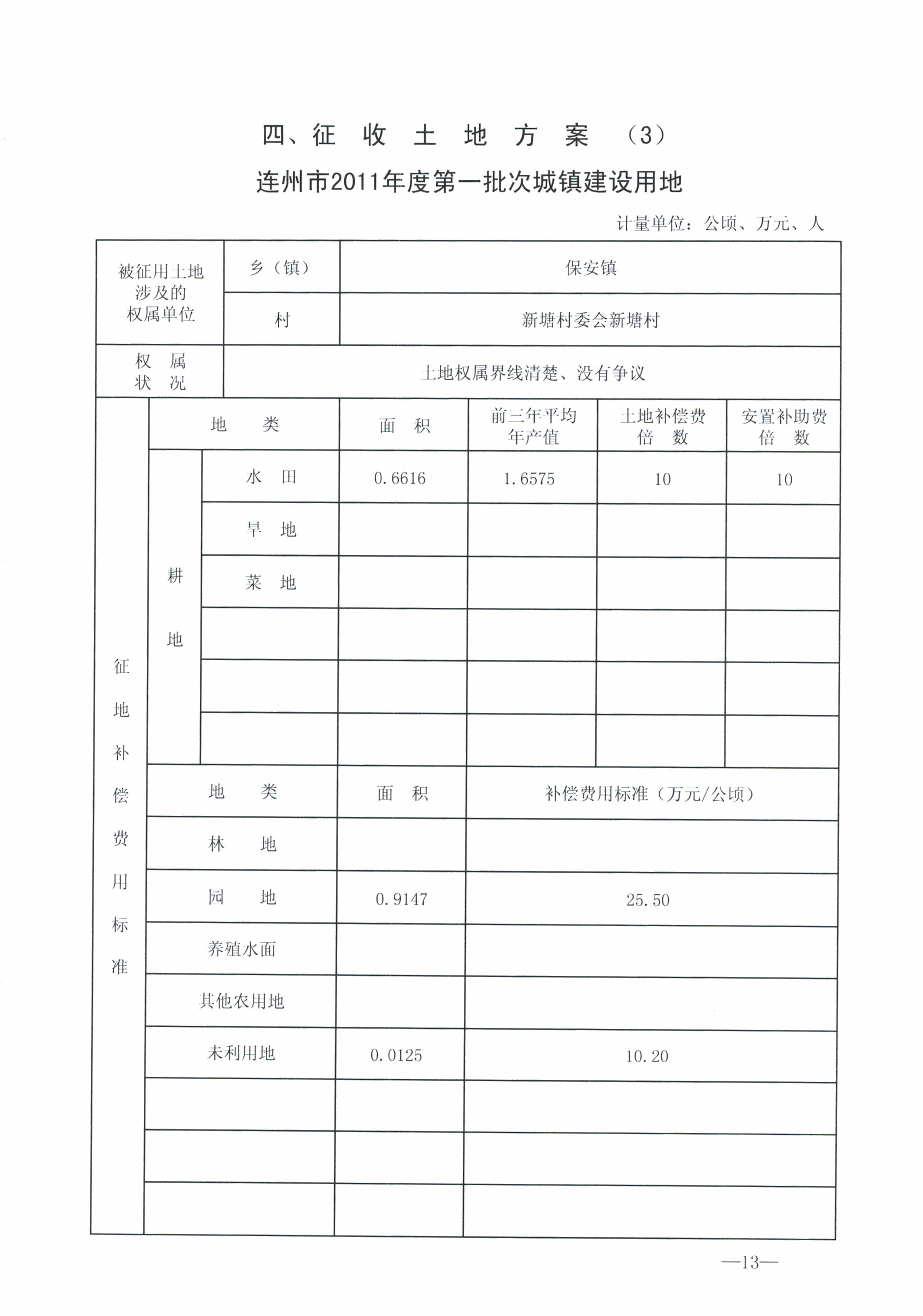 連州市2011年度第一批次城鎮(zhèn)建設(shè)用地公告信息(一書四方案)
