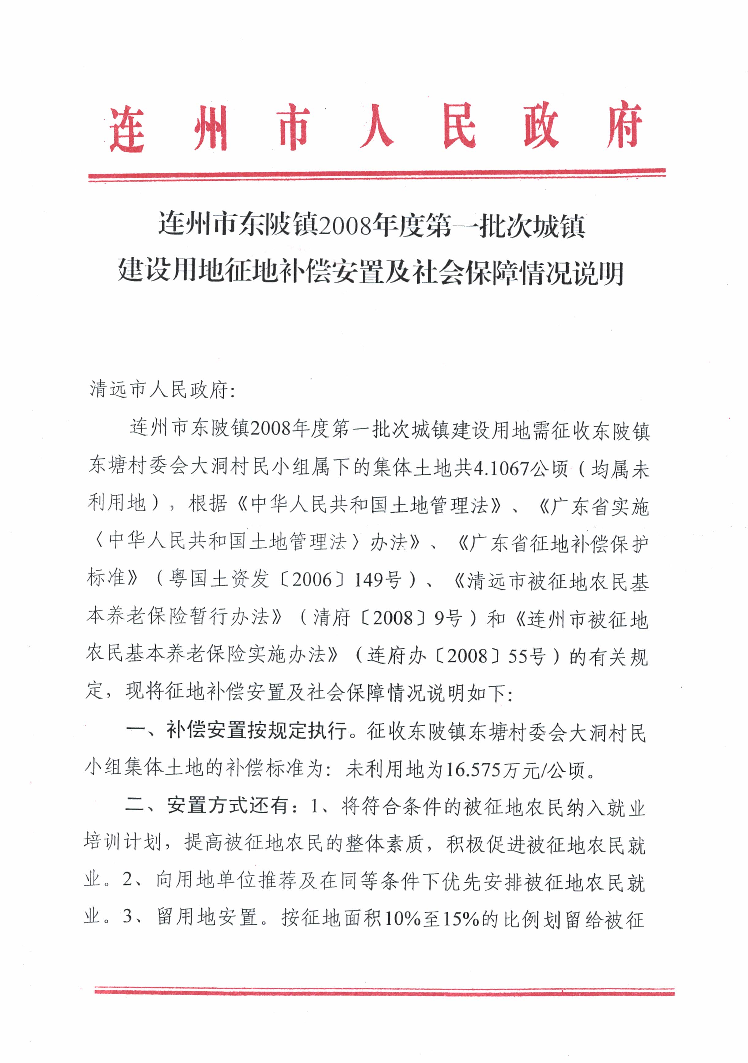 連州市東陂鎮(zhèn)2008年度第一批次城鎮(zhèn)建設(shè)用地補(bǔ)償安置方案公告