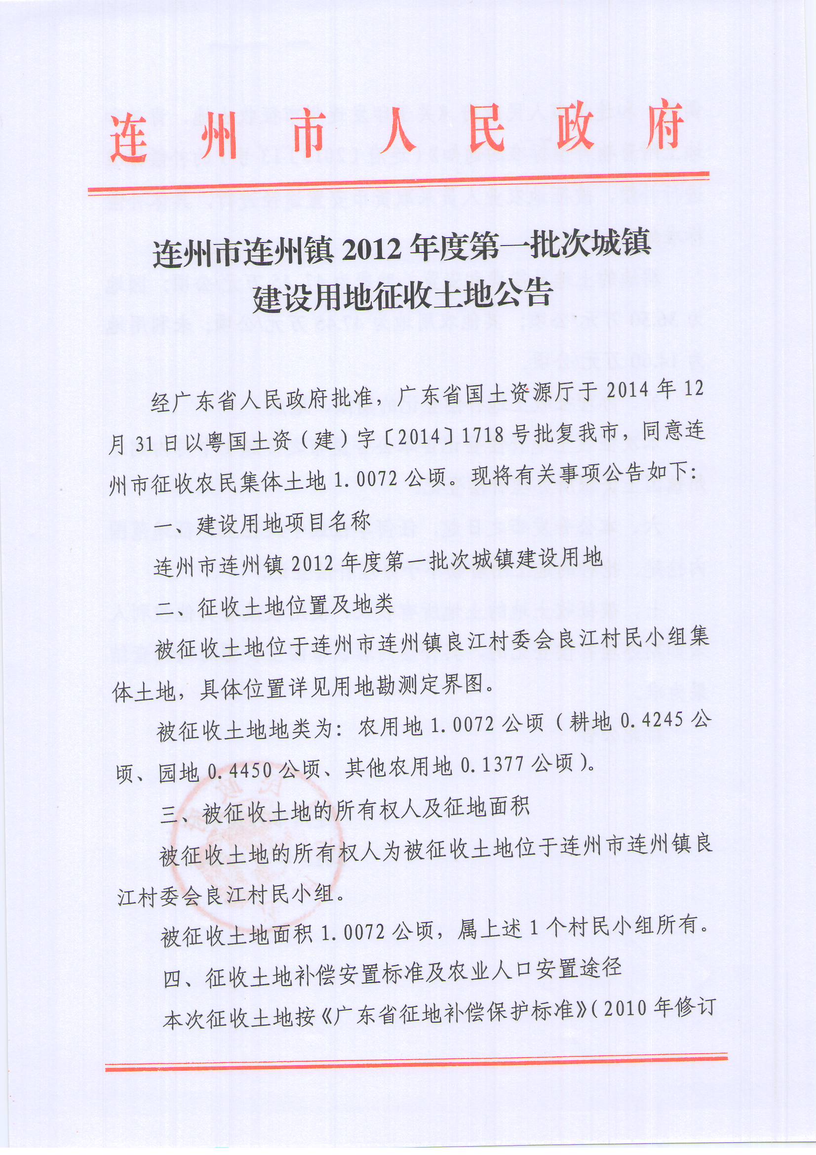 連州市連州鎮(zhèn)2012年度第一批次城鎮(zhèn)建設(shè)用地征收土地公告