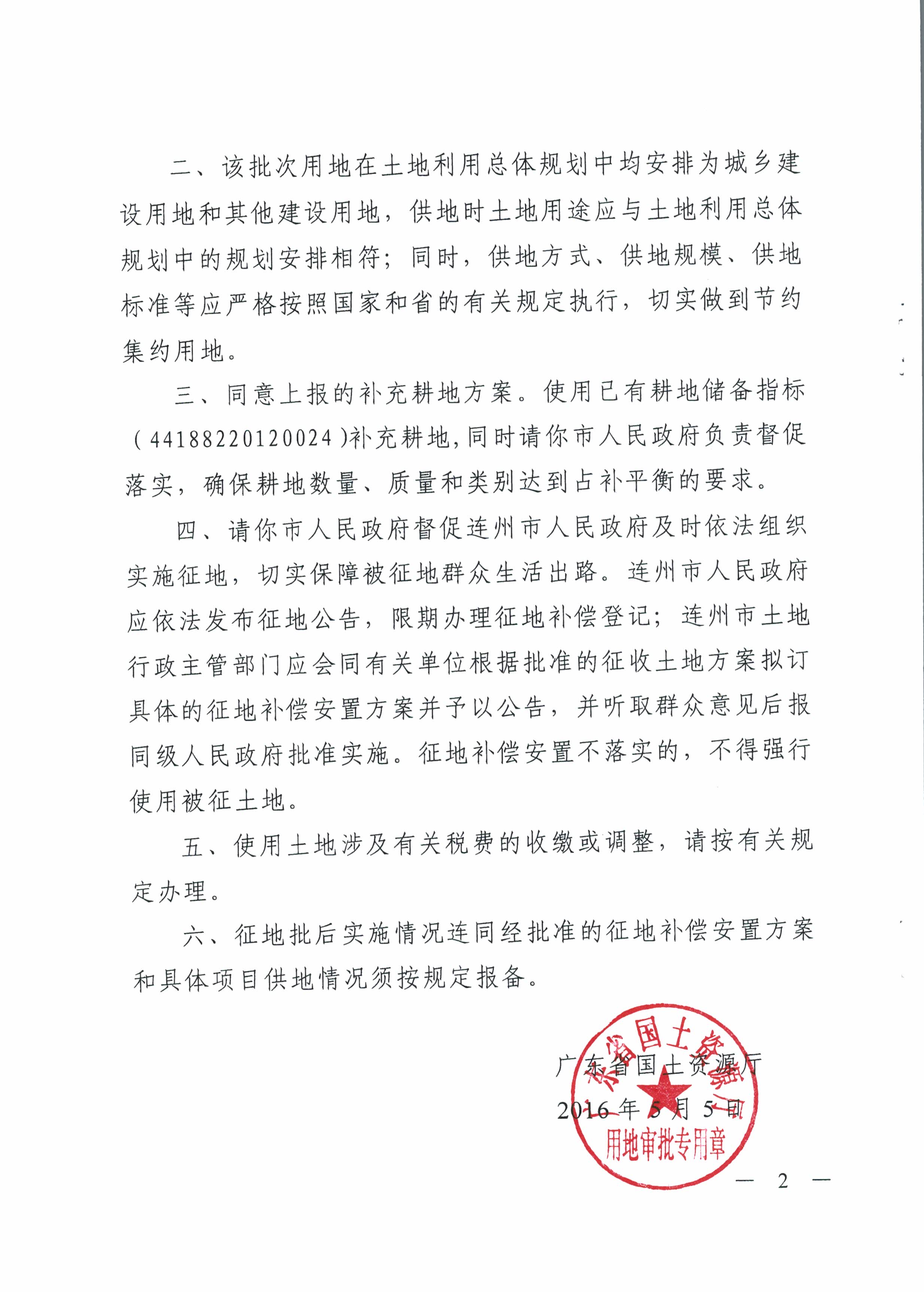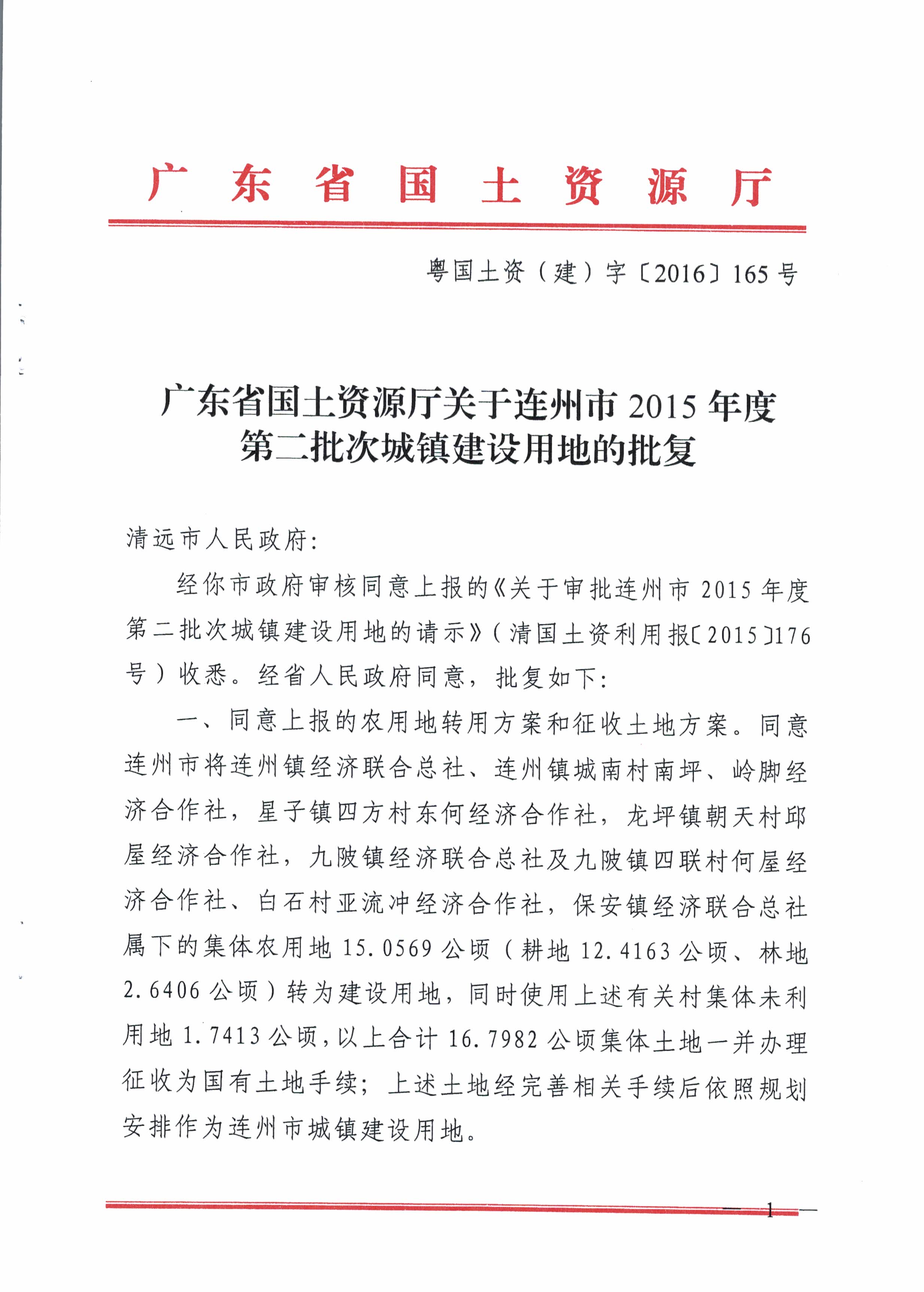 連州市2015年度第二批次城鎮(zhèn)建設(shè)用地的批復(fù)