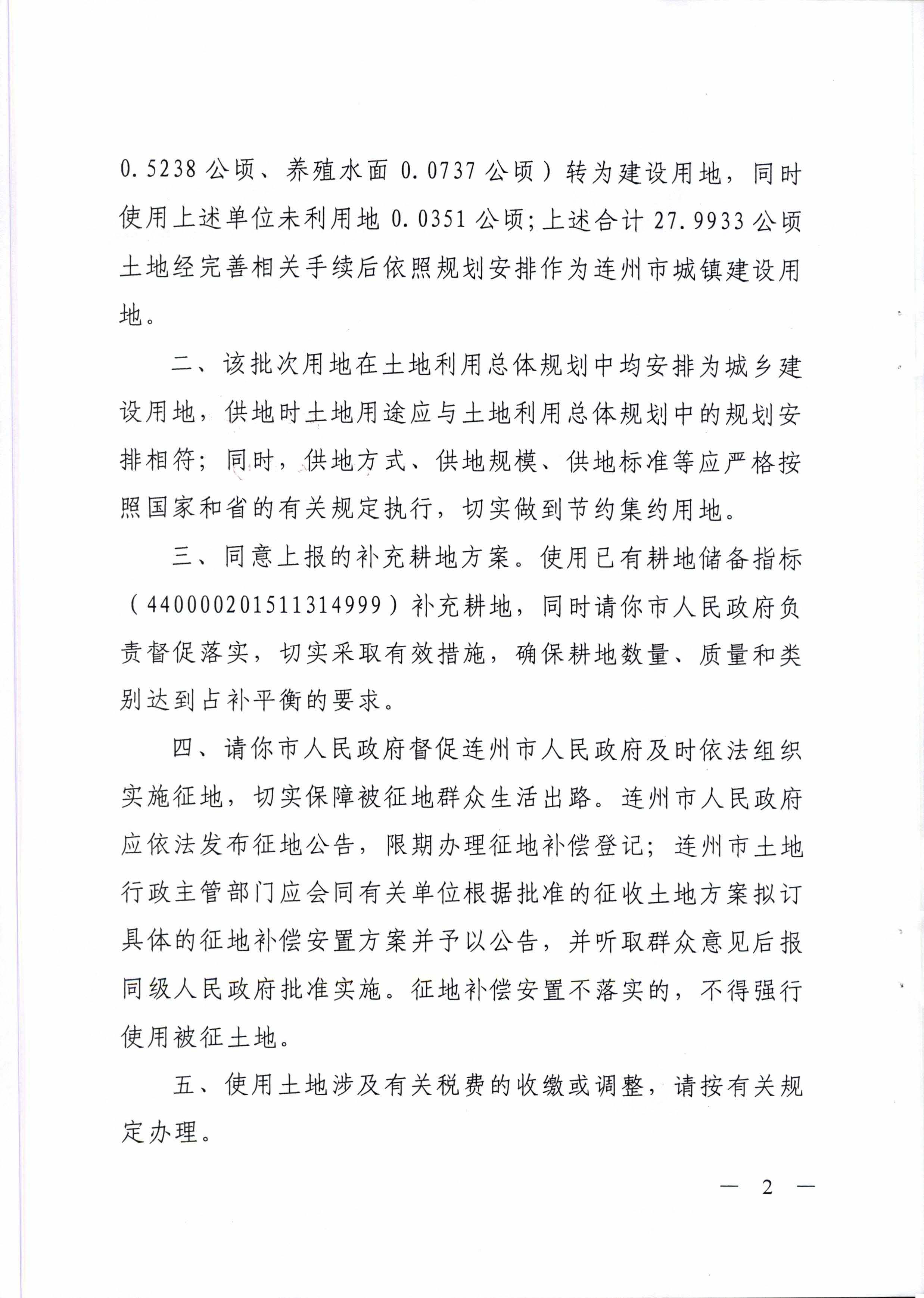連州市2015年度第五批次城鎮(zhèn)建設用地的批復