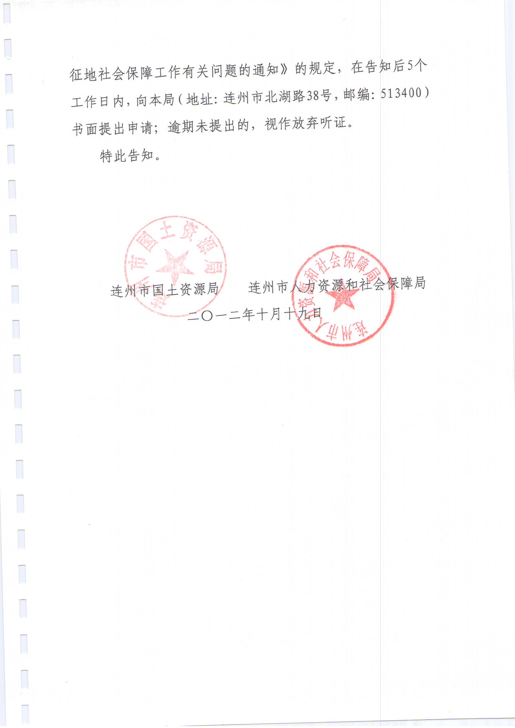 連州市連州鎮(zhèn)2012年度第一批次城鎮(zhèn)建設(shè)用地征地聽(tīng)證信息