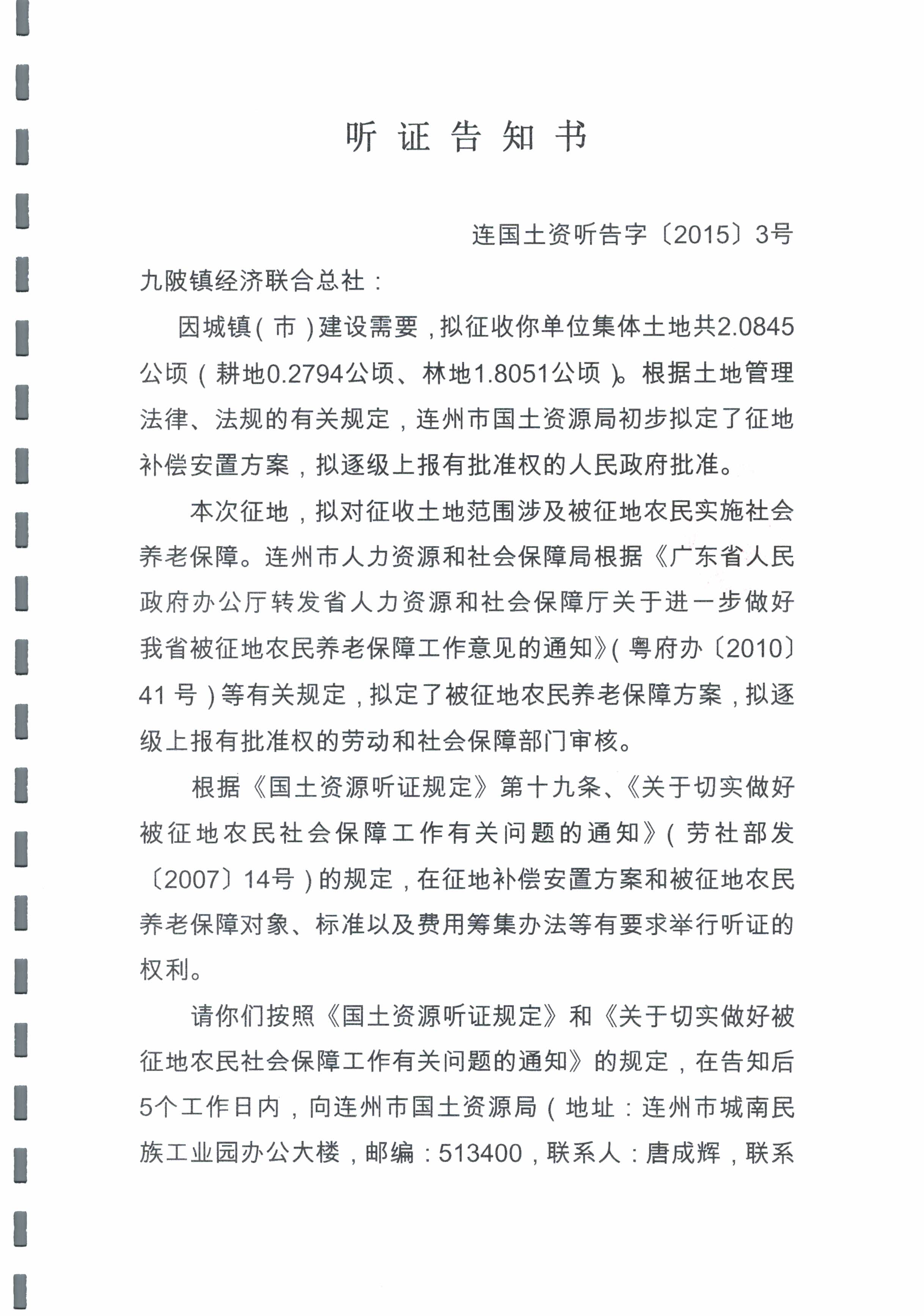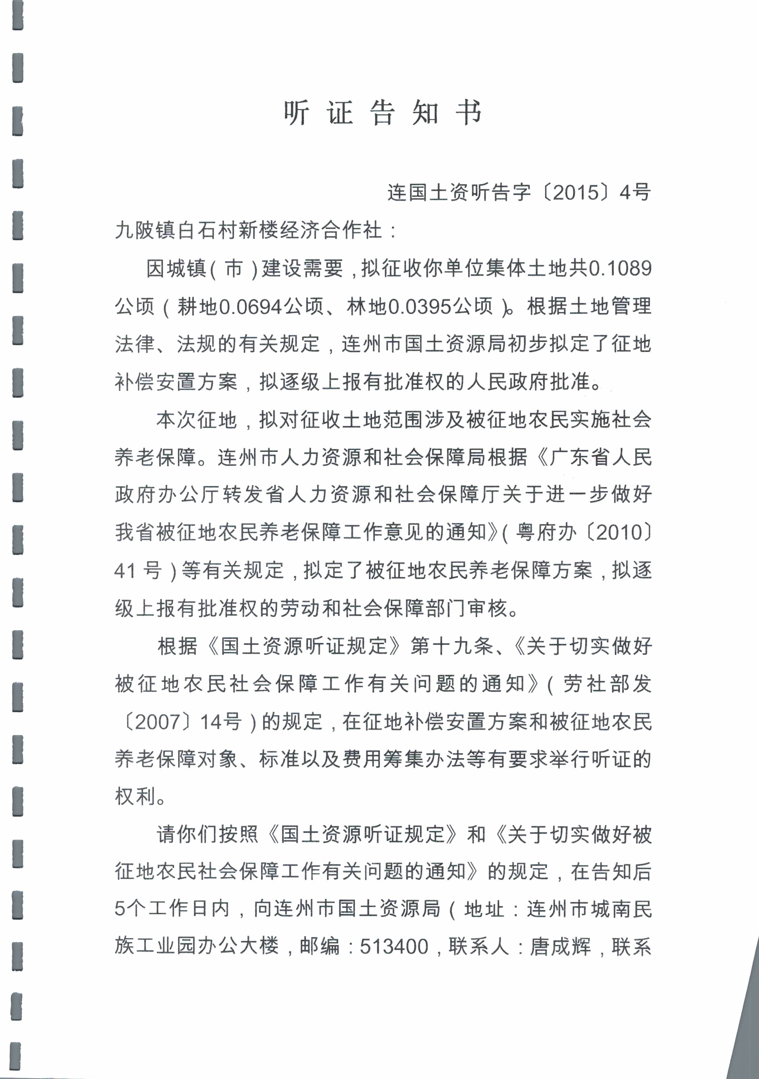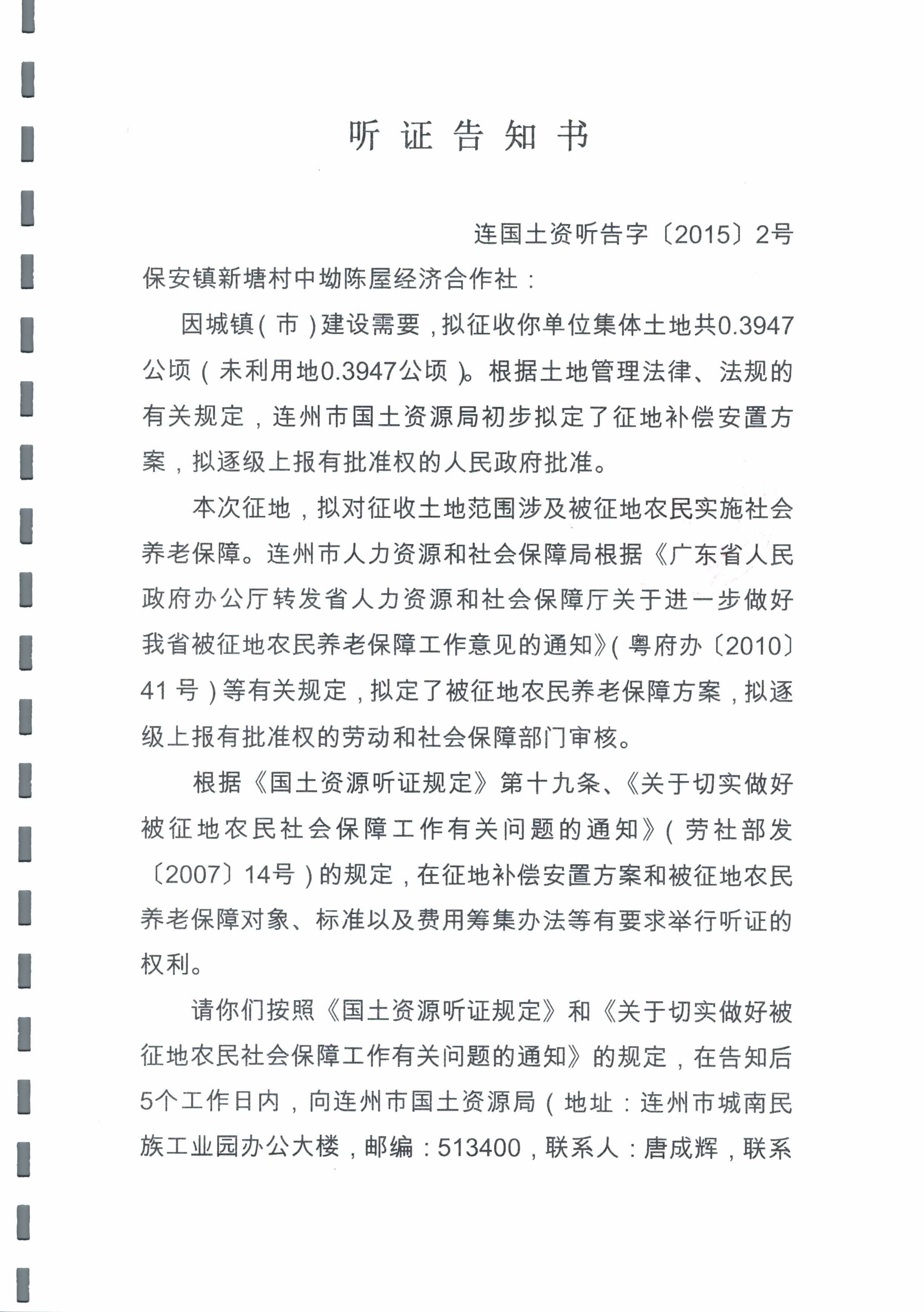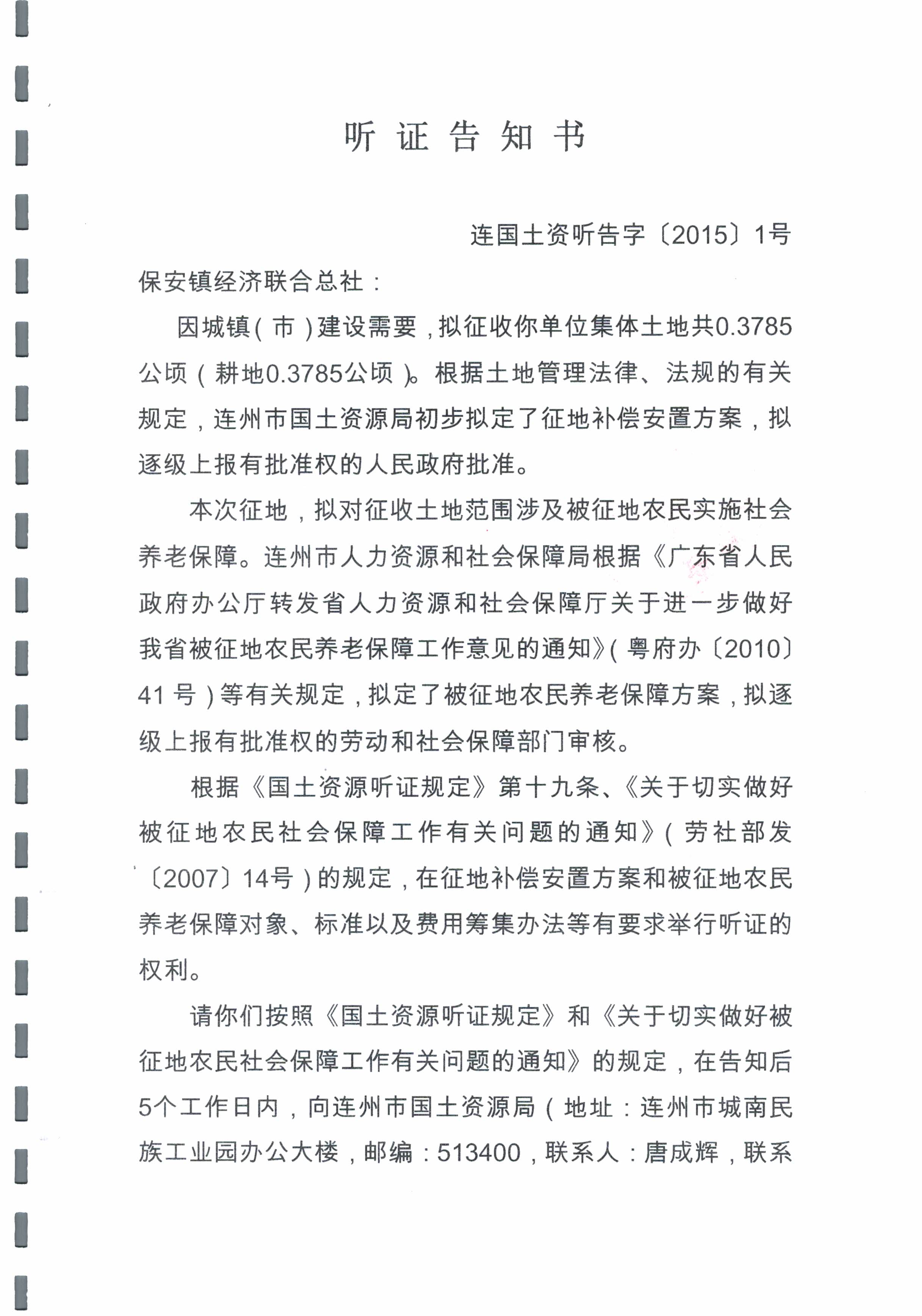 連州市2015年度第一批次城鎮(zhèn)建設用地聽證信息