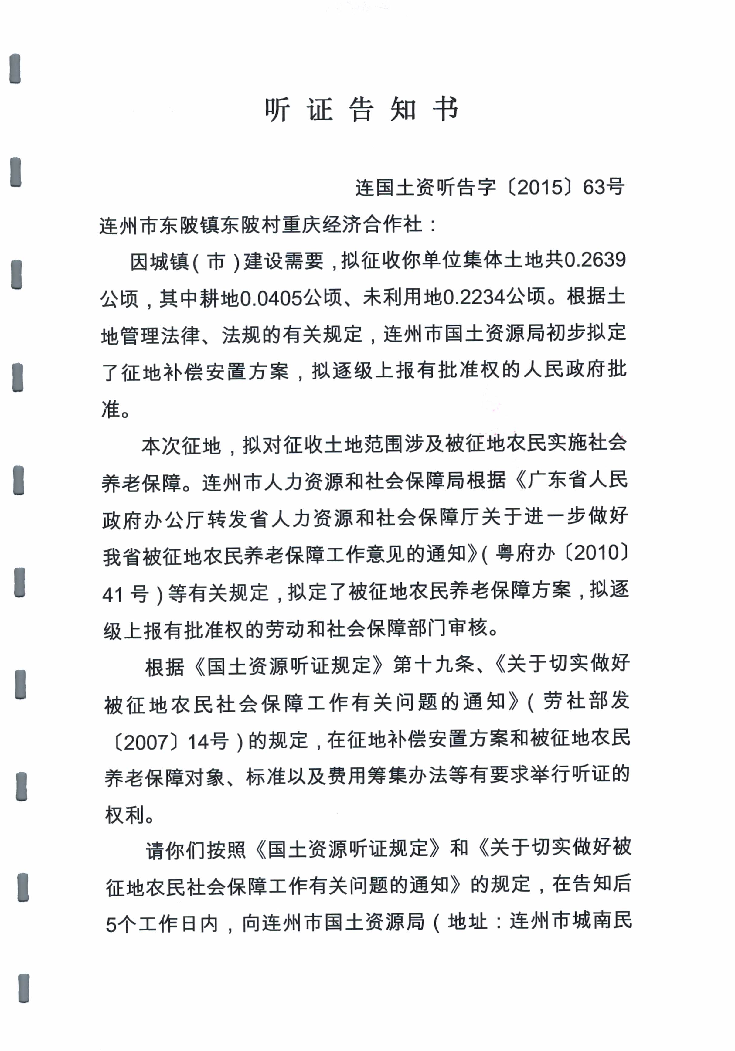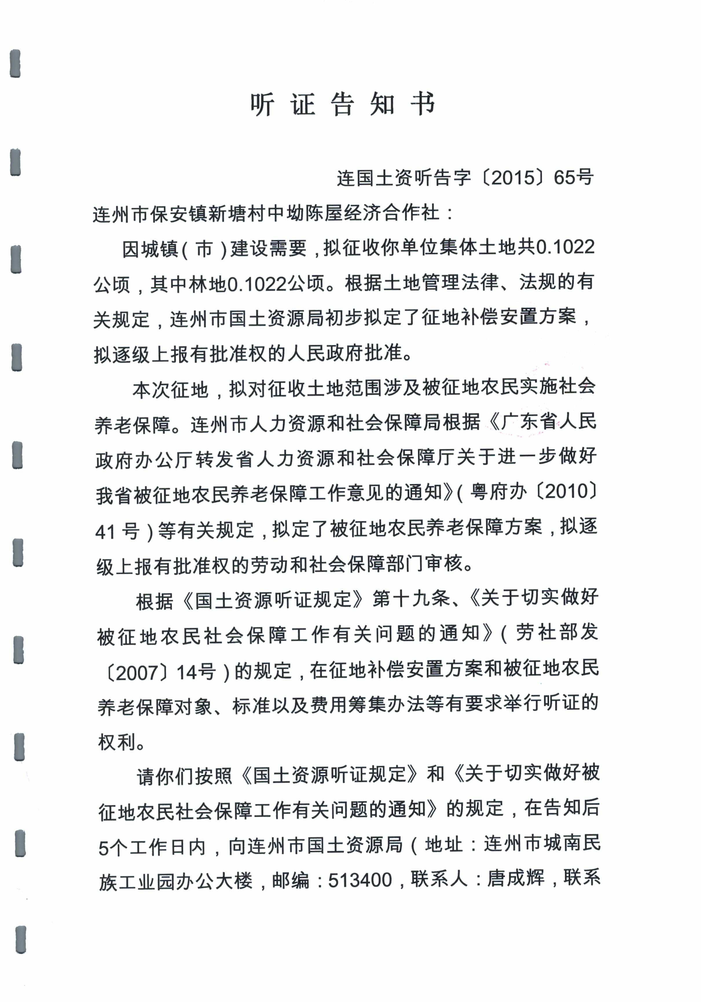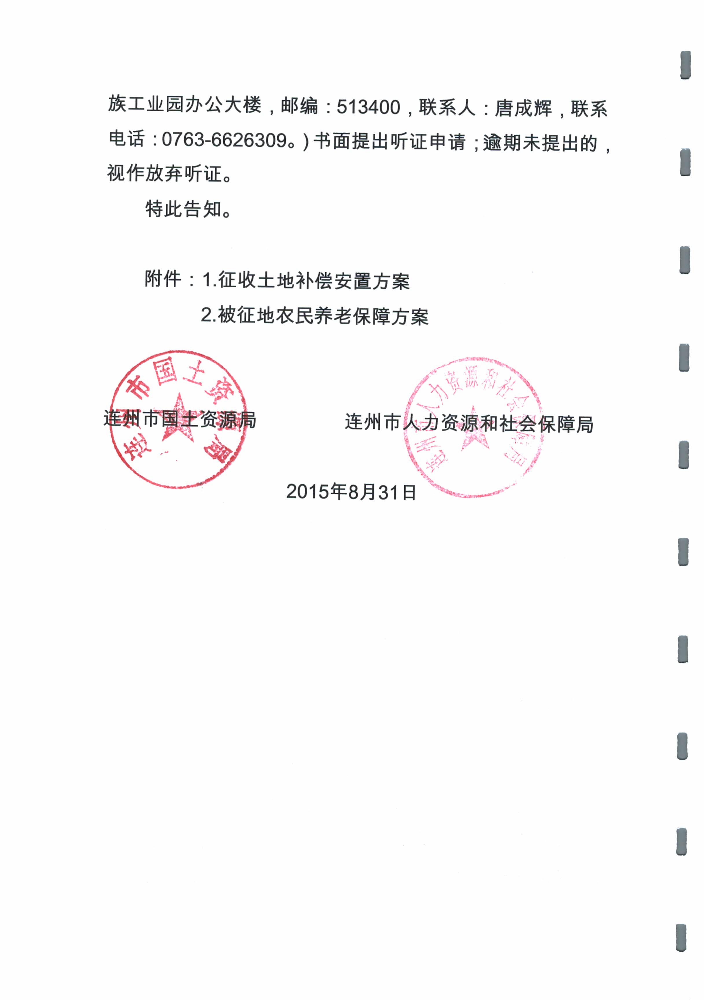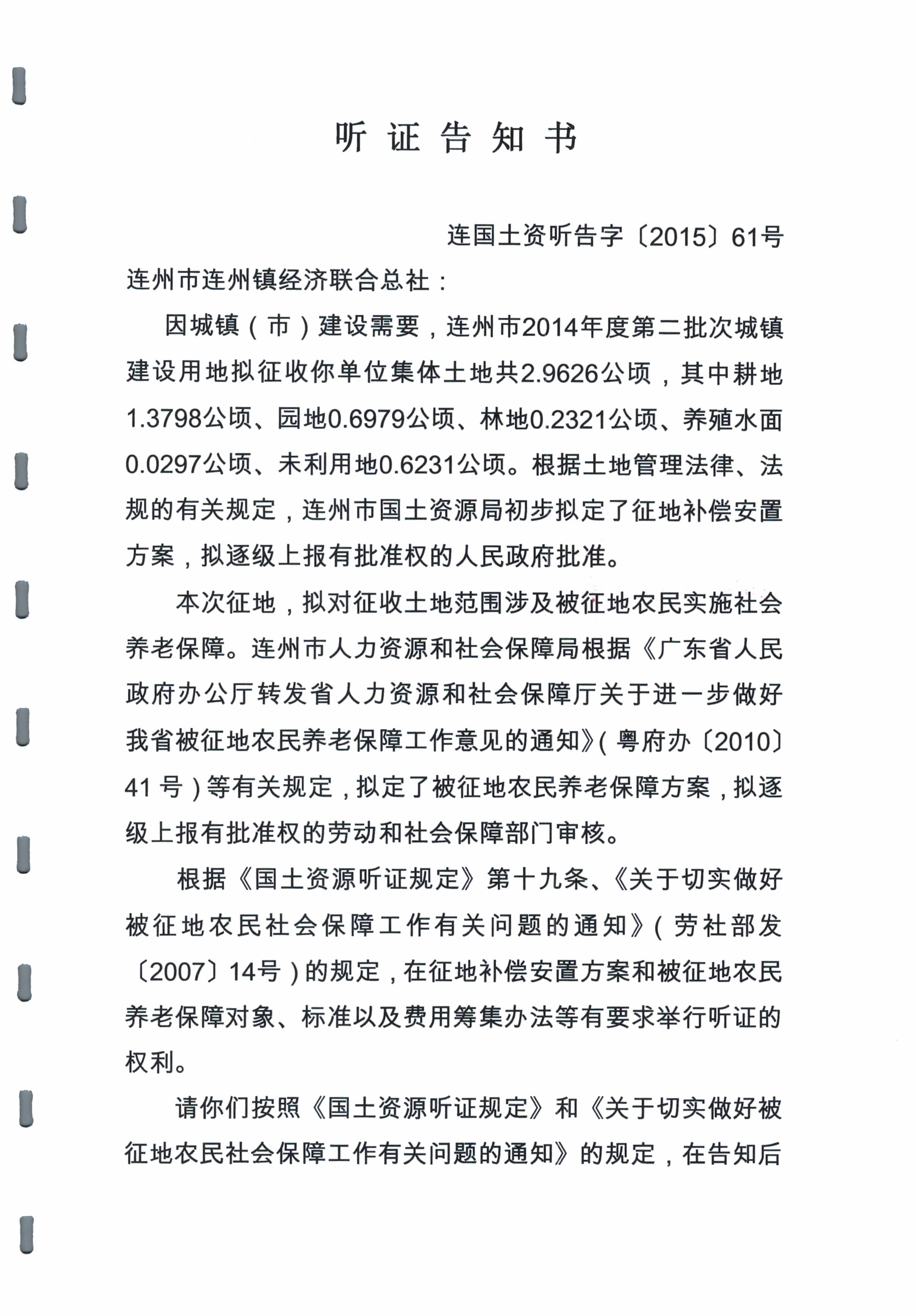連州市2014年度第二批次城鎮(zhèn)建設(shè)用地聽證信息