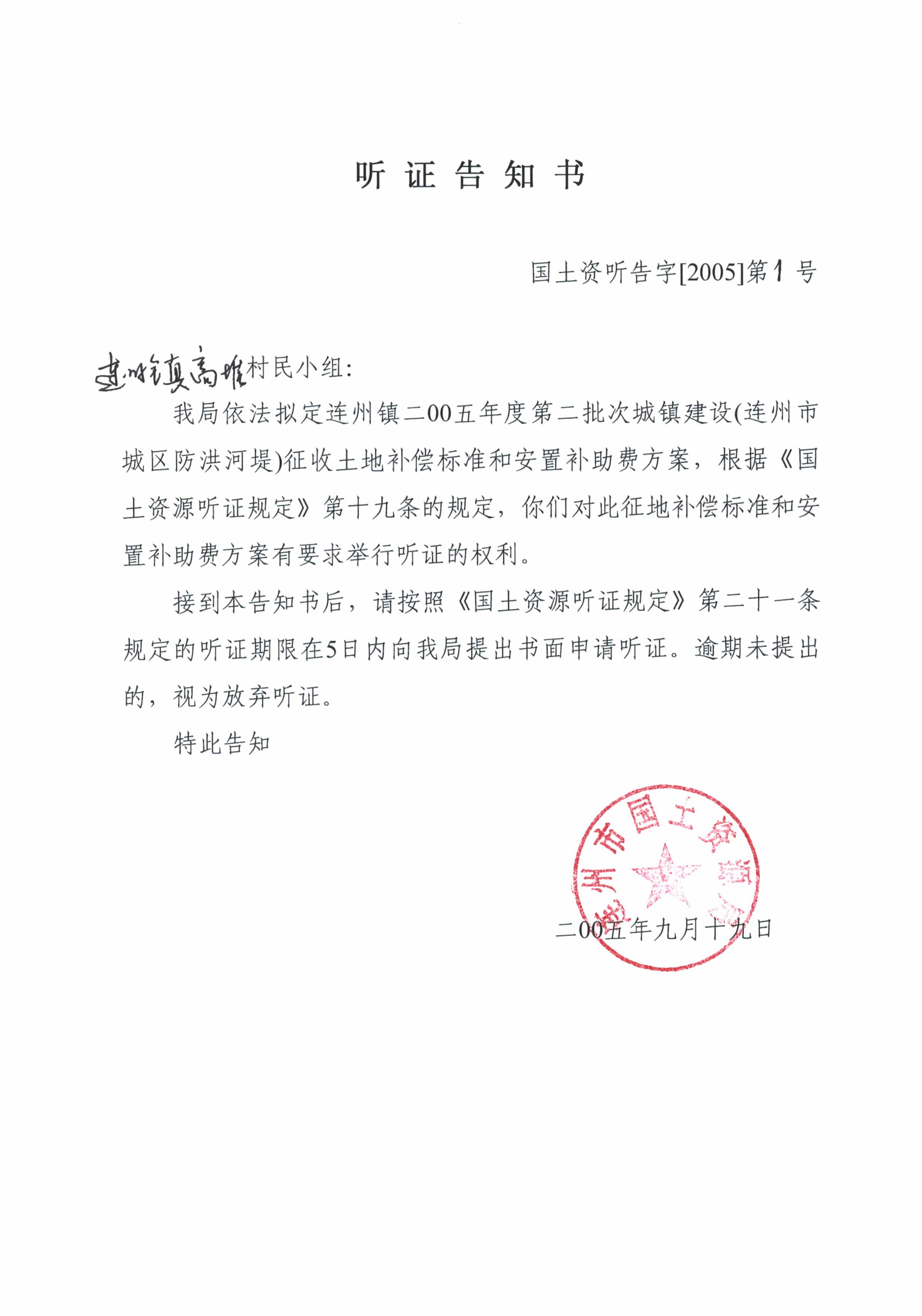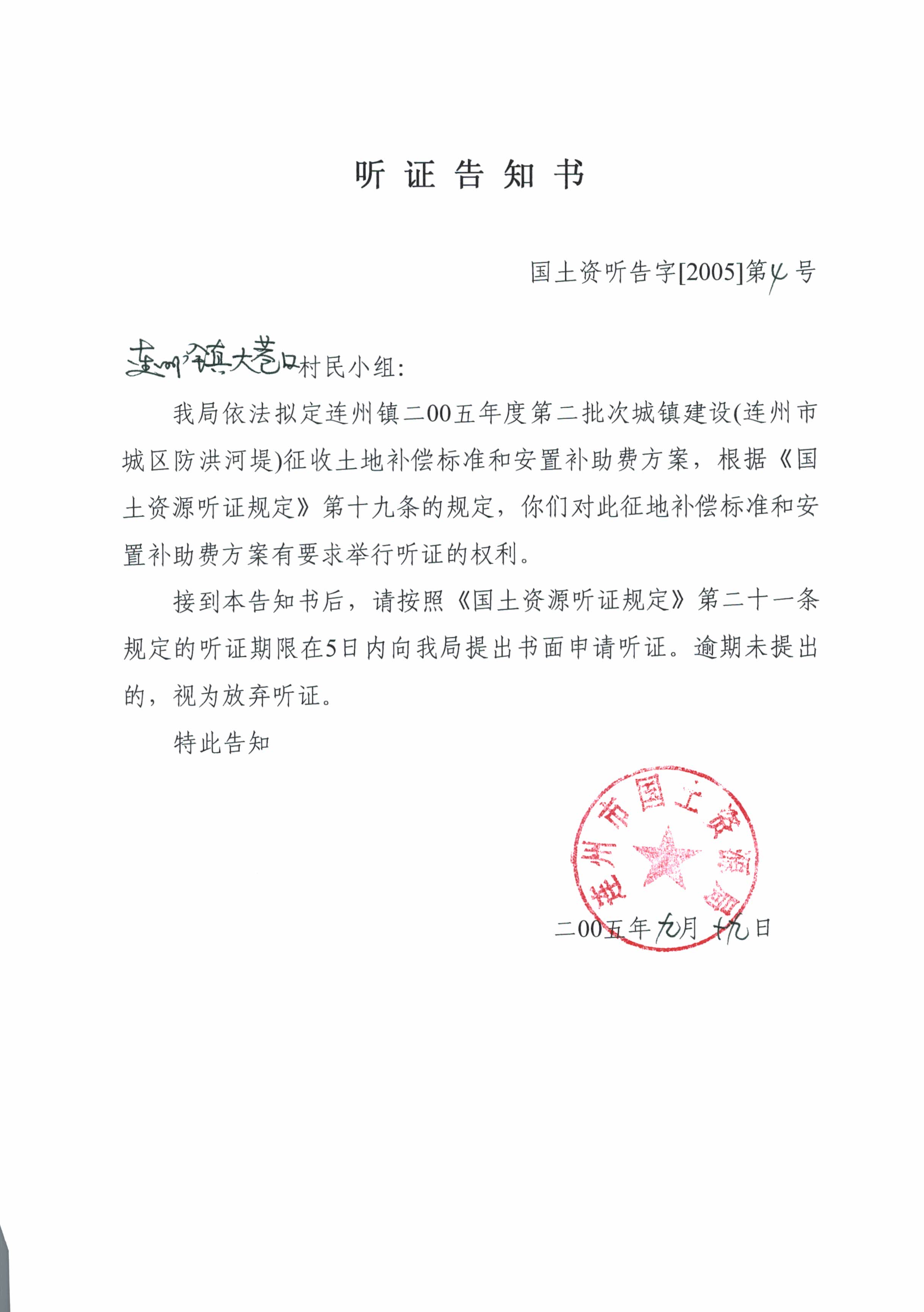 連州市連州鎮(zhèn)2005年度第二批次城鎮(zhèn)建設(shè)用地聽(tīng)證信息