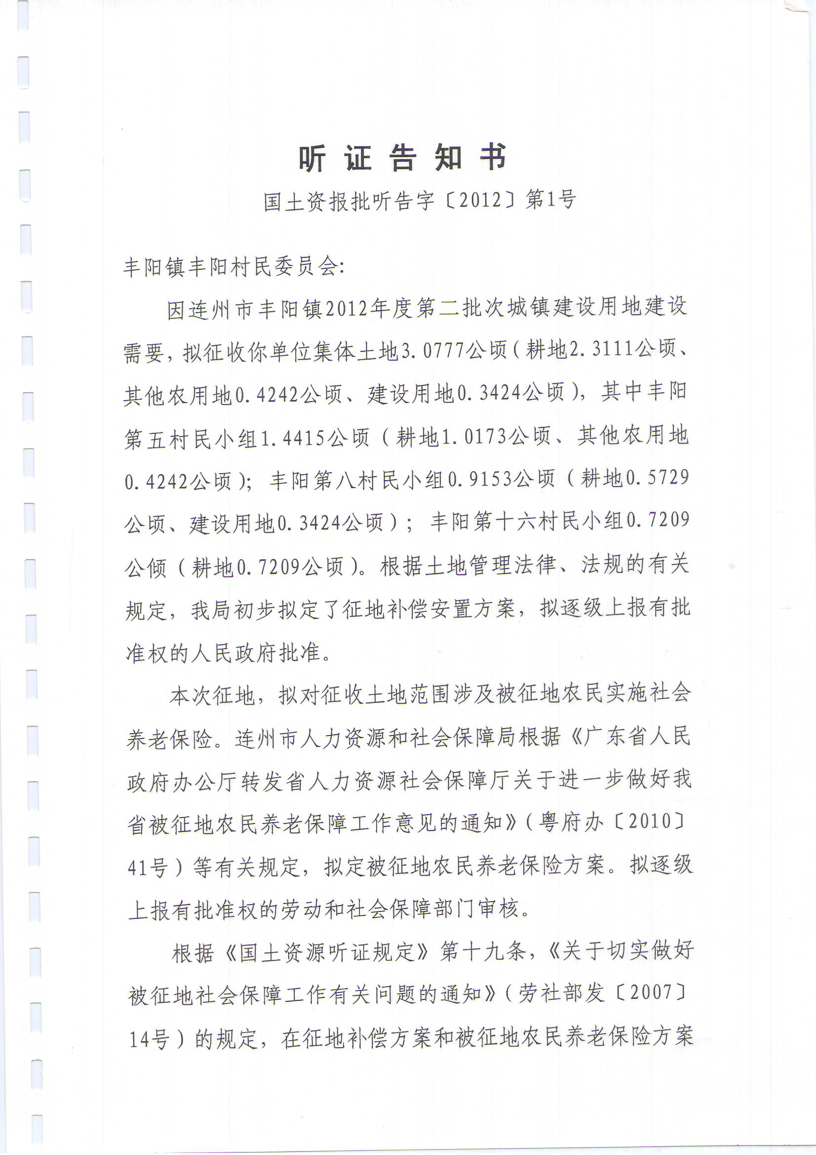連州市豐陽(yáng)鎮(zhèn)2012年度第二批次城鎮(zhèn)建設(shè)用地聽(tīng)證信息