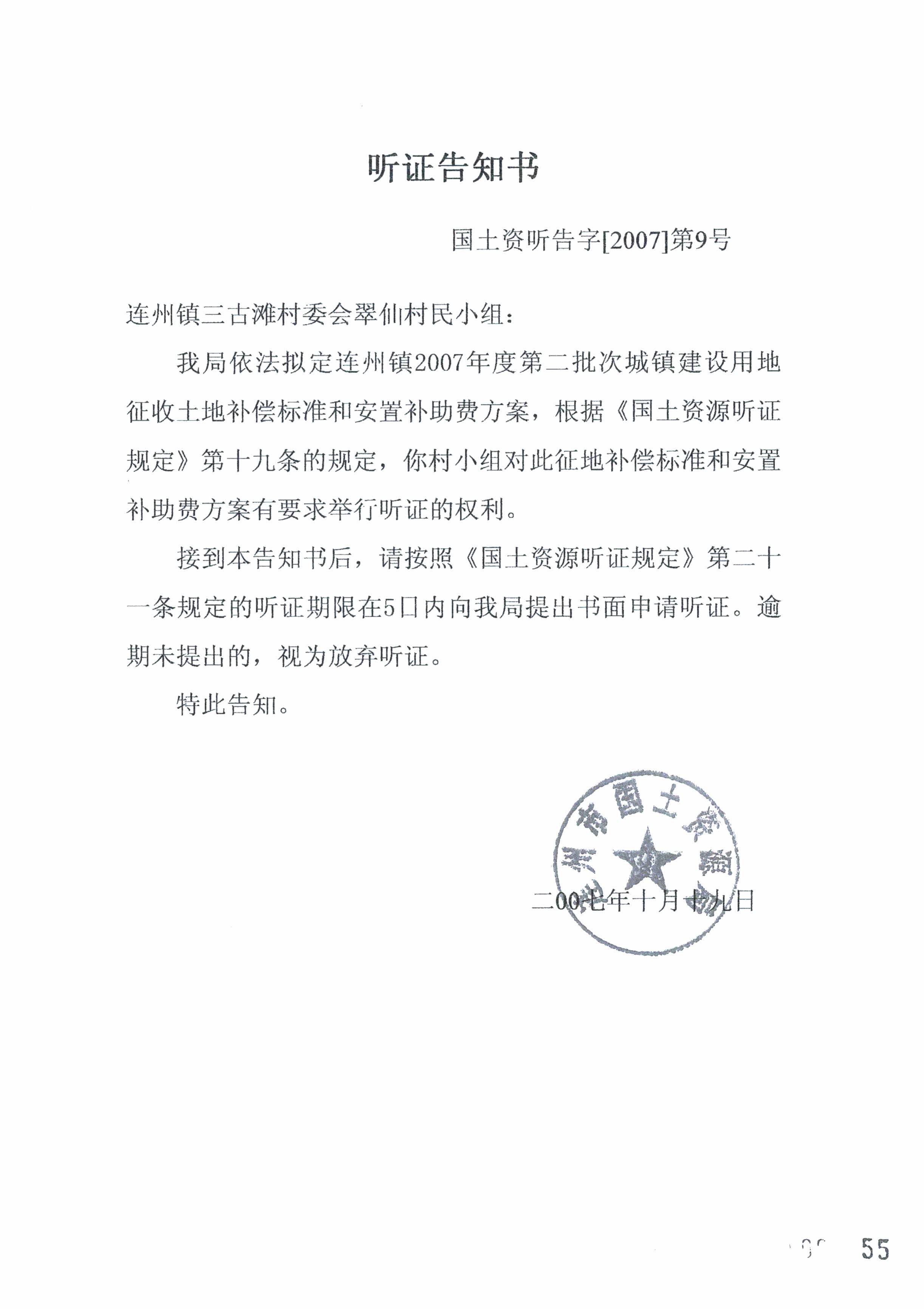 連州鎮(zhèn)2007年度第二批次城鎮(zhèn)建設(shè)用地聽證信息