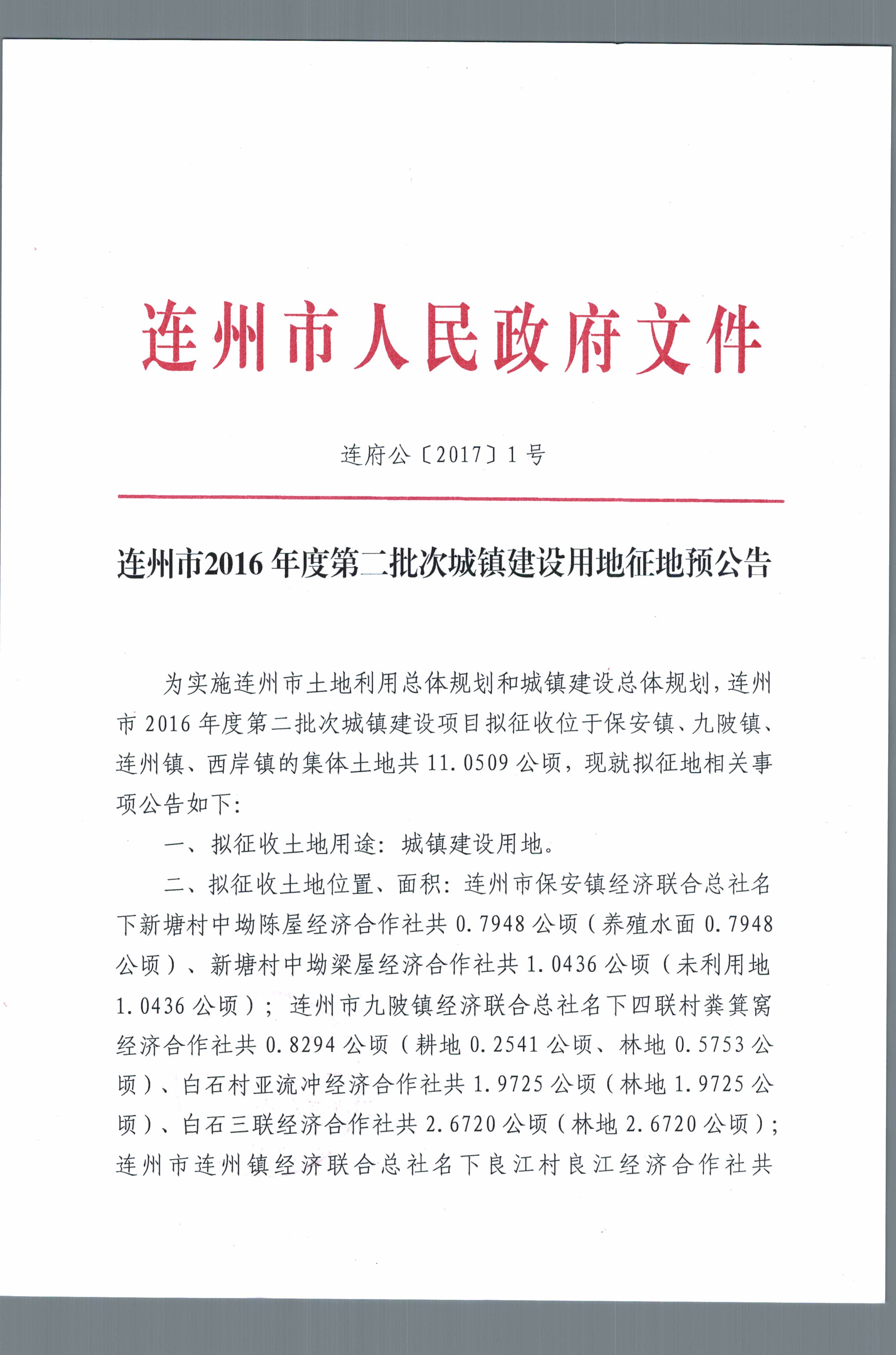 連州市2016第二批次城鎮(zhèn)建設用地征地預公告