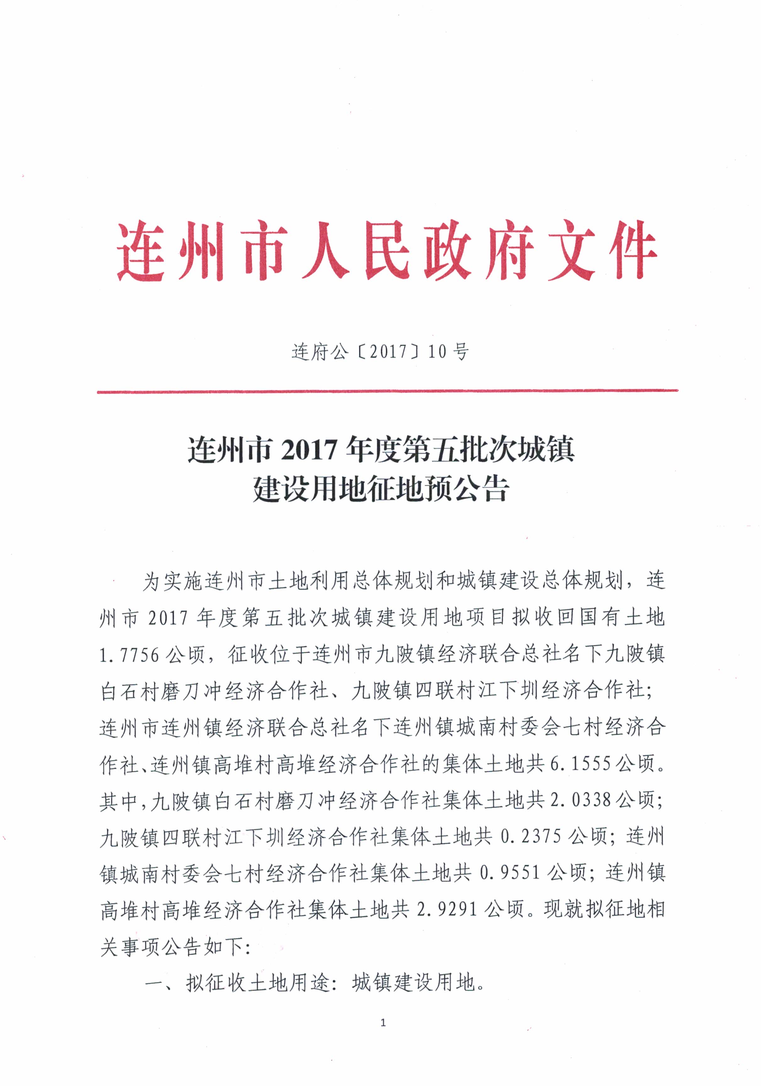 連州市2017第五批次城鎮(zhèn)建設(shè)用地征地預(yù)公告