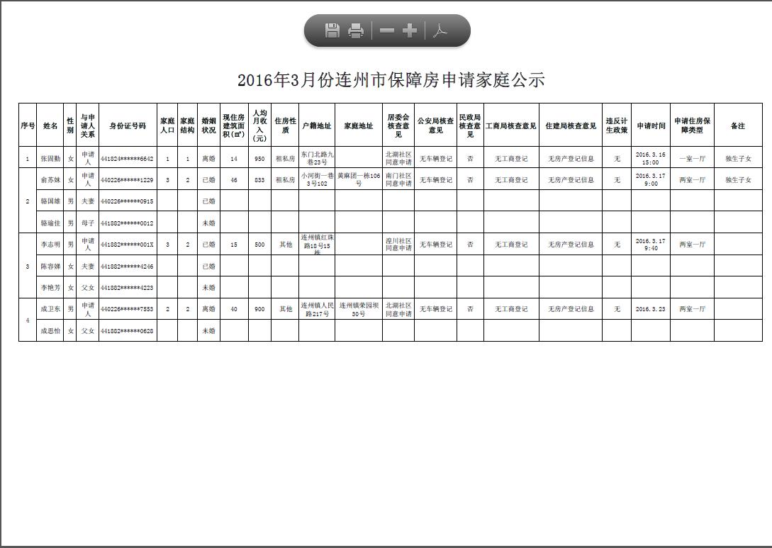 2016年3月份連州市保障房申請(qǐng)家庭公示