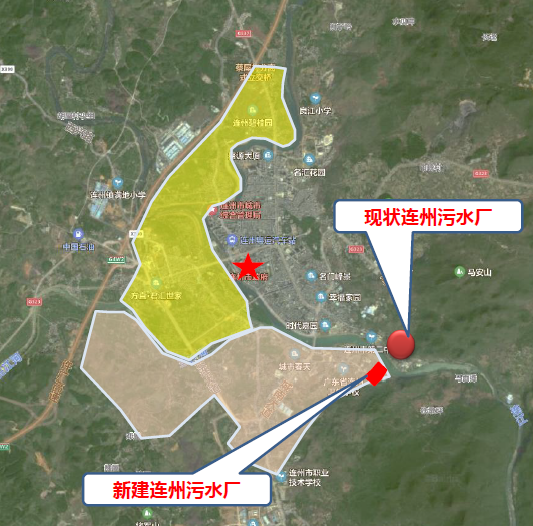 擬建地點(diǎn):連州市人民醫(yī)院、連發(fā)紙廠地塊附近,與現(xiàn)狀污水廠隔江相望,占地2.5公頃,約37.5畝。