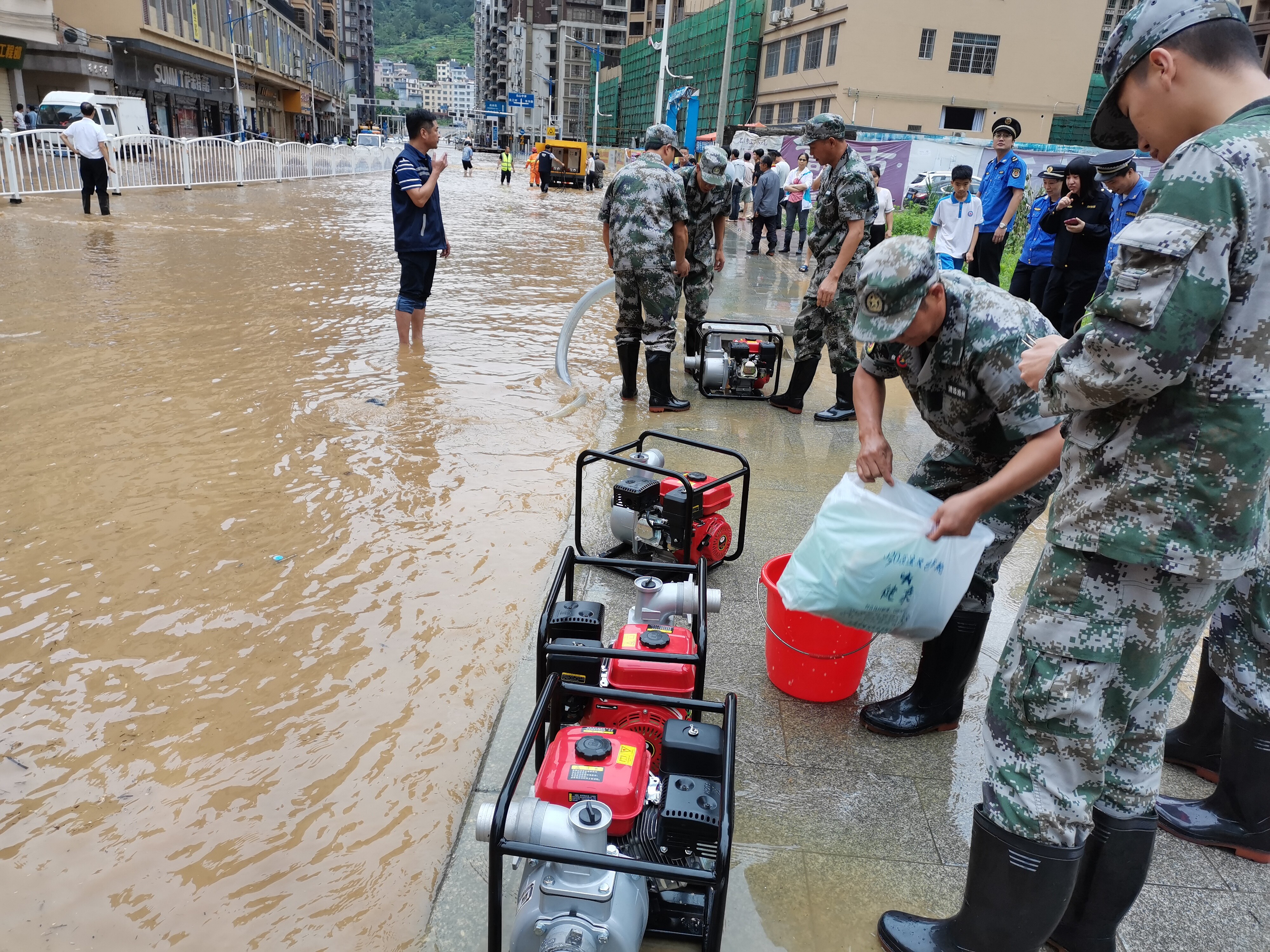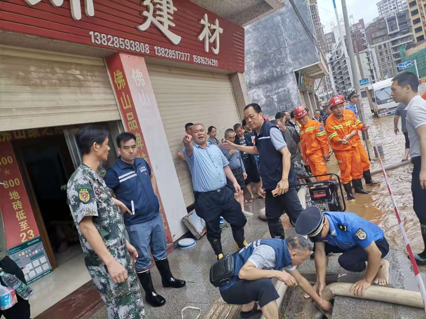 救援隊(duì)在現(xiàn)場(chǎng)排澇