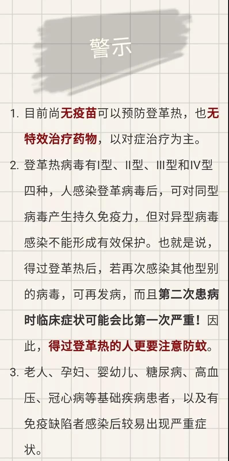 登革熱是主要由一種名叫白紋伊蚊的蚊子(廣東俗稱“花斑蚊”)叮咬傳播的急性傳染病,傳播迅速,發(fā)病率高,容易出現(xiàn)暴發(fā)流行,目前無預(yù)防針和藥物可以預(yù)防。