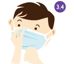 如果選用綁帶式外科口罩,將口罩的綁帶系在頭頂;如選用掛耳式外科口罩,則把口罩的橡皮筋繞在耳朵上。