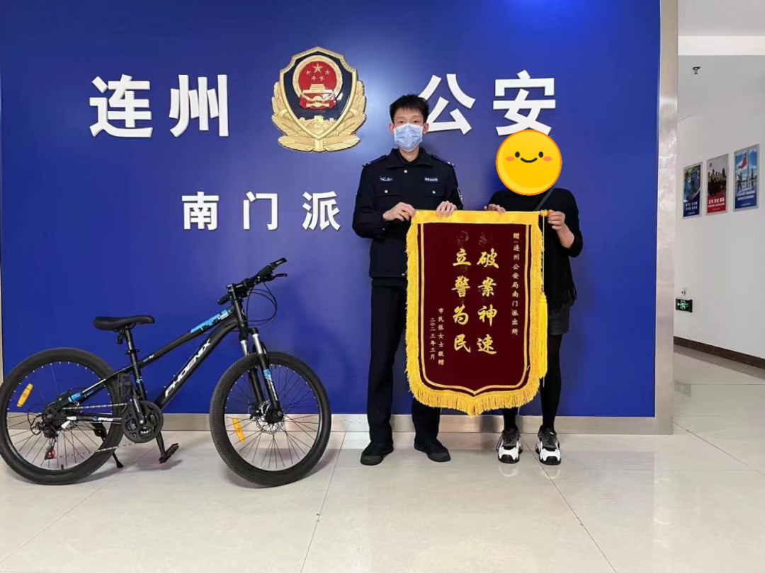 3月21日,南門派出所將自行車發(fā)還給事主張女士,張女士特送來一面寫著“破案神速,立警為民"的錦旗,對南門派出所工作效率表示高度贊揚。