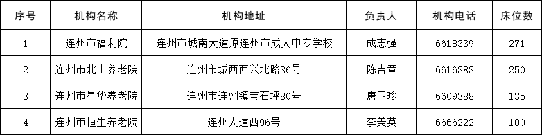 連州市養(yǎng)老機(jī)構(gòu)備案信息