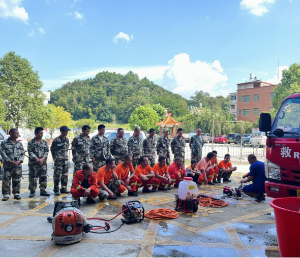 在實戰(zhàn)演練方面,九陂鎮(zhèn)在龍崗村成功模擬了一次山火撲滅演練。演練中,隊員們迅速響應(yīng)、協(xié)同作戰(zhàn),利用消防車輛和水槍等裝備,對模擬的山火進(jìn)行了有效的撲救。演練不僅檢驗了隊伍受訓(xùn)成果,更在實戰(zhàn)中錘煉了隊伍的應(yīng)急反應(yīng)能力和協(xié)同作戰(zhàn)能力。