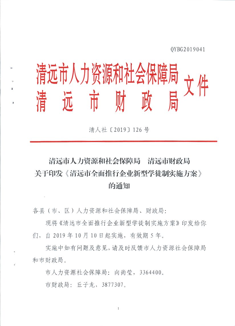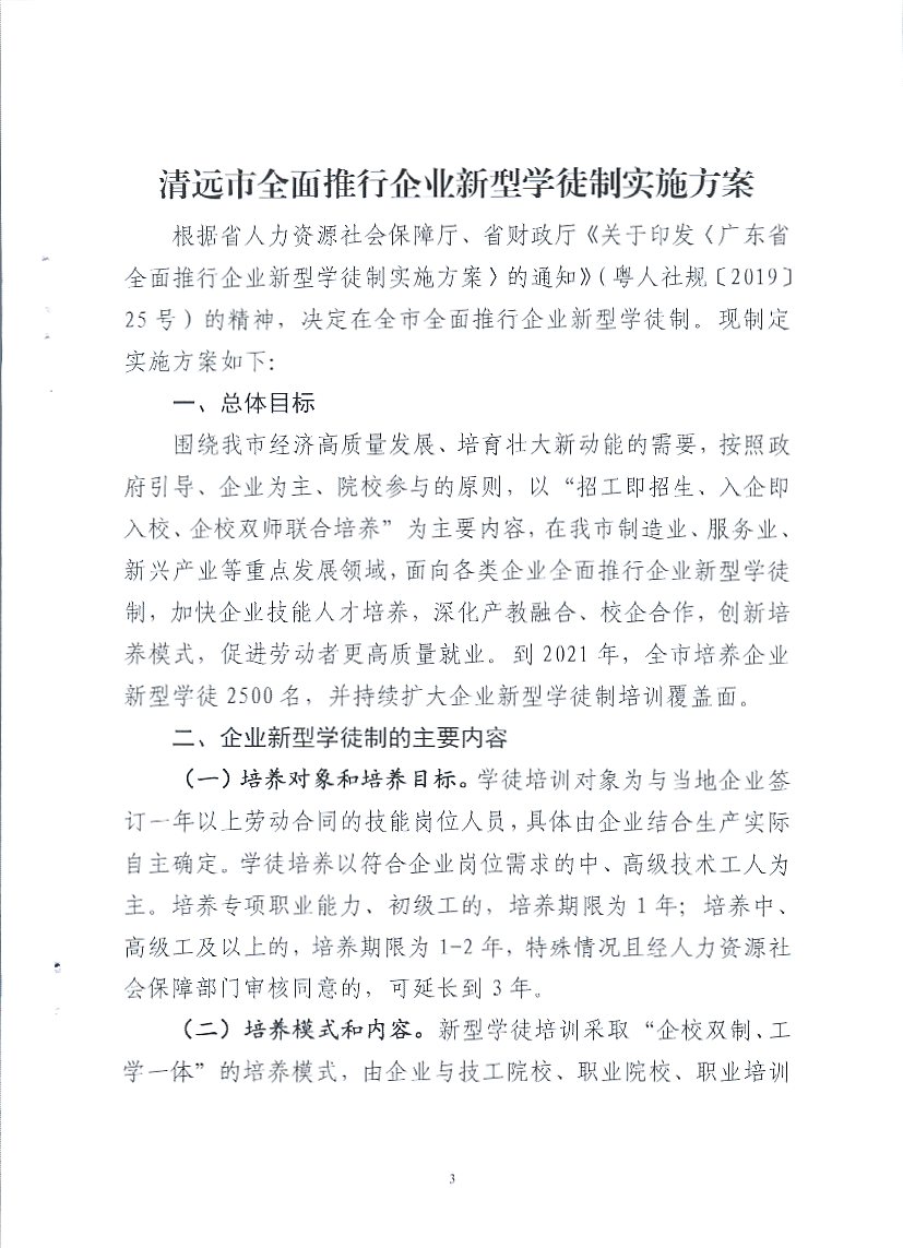 清遠(yuǎn)市人力資源和社會(huì)保障局 清遠(yuǎn)市財(cái)政局 關(guān)于印發(fā)《清遠(yuǎn)市全面推行企業(yè)新型學(xué)徒制實(shí)施方案》的通知