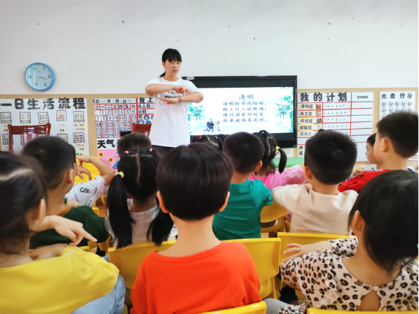 每個班組織開展一節(jié)主題班會,并用詩歌朗誦、繪畫、手工的形式融入到幼兒的日常教學(xué)活動中,通過清明節(jié)的主題教育,讓幼兒了解清明節(jié)是中國的一個傳統(tǒng)節(jié)日,了解清明節(jié)的一些習(xí)俗,清明節(jié)的歷史由來,緬懷先烈,知道自己現(xiàn)在的幸福生活是來之不易的。