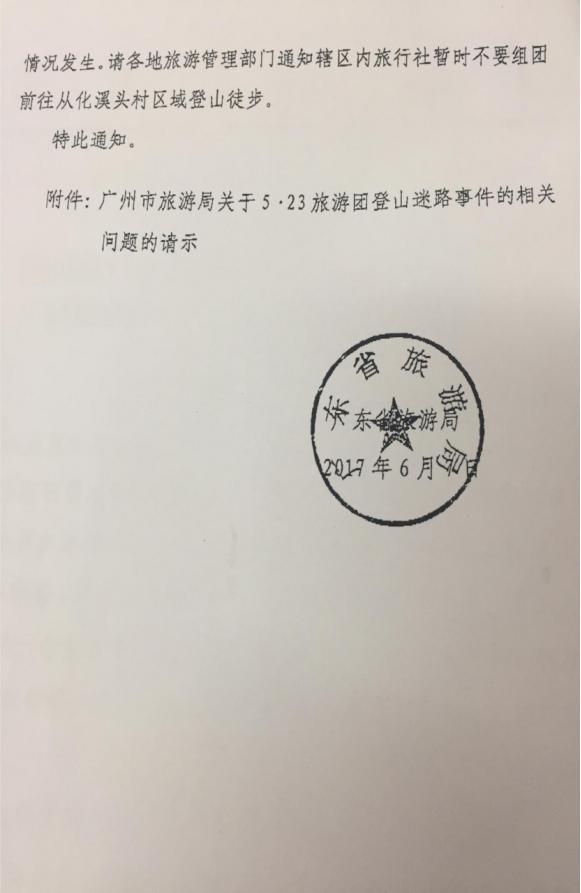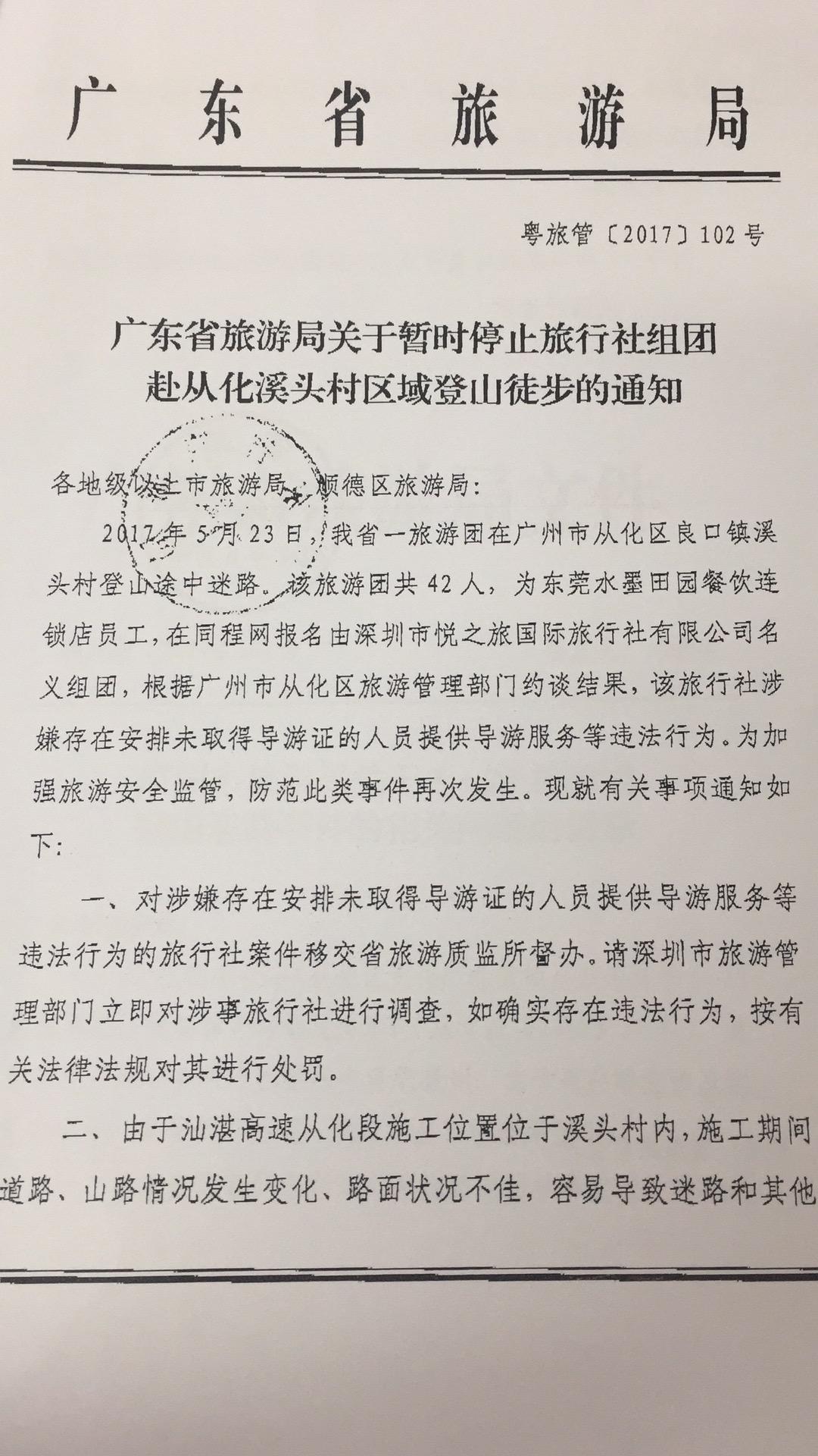 關(guān)于轉(zhuǎn)發(fā)廣東省旅游局《關(guān)于暫時(shí)停止旅行社組團(tuán)赴從化溪頭村區(qū)域登山徒步的通知》