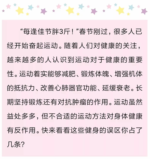因此,需要擺正運(yùn)動(dòng)健身的心態(tài),當(dāng)運(yùn)動(dòng)的劇烈程度將要影響自己的正常說(shuō)話時(shí)、在感到肌肉酸痛時(shí),適當(dāng)降低運(yùn)動(dòng)量。