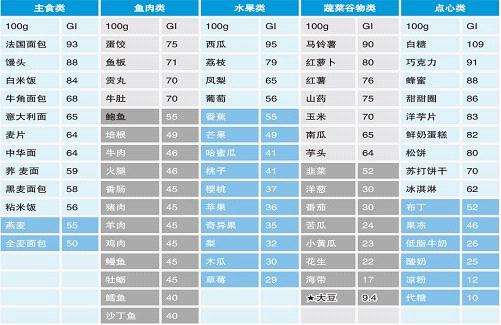 不同糖類引起血糖升高的速度和程度有很大差異,可用升糖指數(shù)(glycemic index, GI)衡量。單糖和雙糖吸收快,GI值高;淀粉需要被分解成單糖才能被人體應(yīng)用,吸收慢,GI值低。GI<50為低升糖指數(shù),50~70為中升糖指數(shù),GI>70為高升糖指數(shù)。
