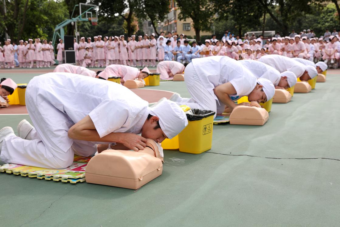 “患者意識(shí)喪失,立即實(shí)施心肺復(fù)蘇!”在心肺復(fù)蘇技能展示環(huán)節(jié),學(xué)生通過模擬急救場(chǎng)景,展現(xiàn)扎實(shí)的專業(yè)功底。在靜脈輸液技能展示環(huán)節(jié),學(xué)生嚴(yán)格遵循無菌操作原則,每一個(gè)步驟都有條不紊、規(guī)范精準(zhǔn)。學(xué)生們還進(jìn)行了風(fēng)采展示,獲得陣陣掌聲。從精準(zhǔn)的靜脈穿刺到規(guī)范的無菌操作,從人文關(guān)懷溝通到團(tuán)隊(duì)協(xié)作處置,每一個(gè)細(xì)節(jié)都彰顯出護(hù)理事業(yè)的嚴(yán)謹(jǐn)與溫度。
