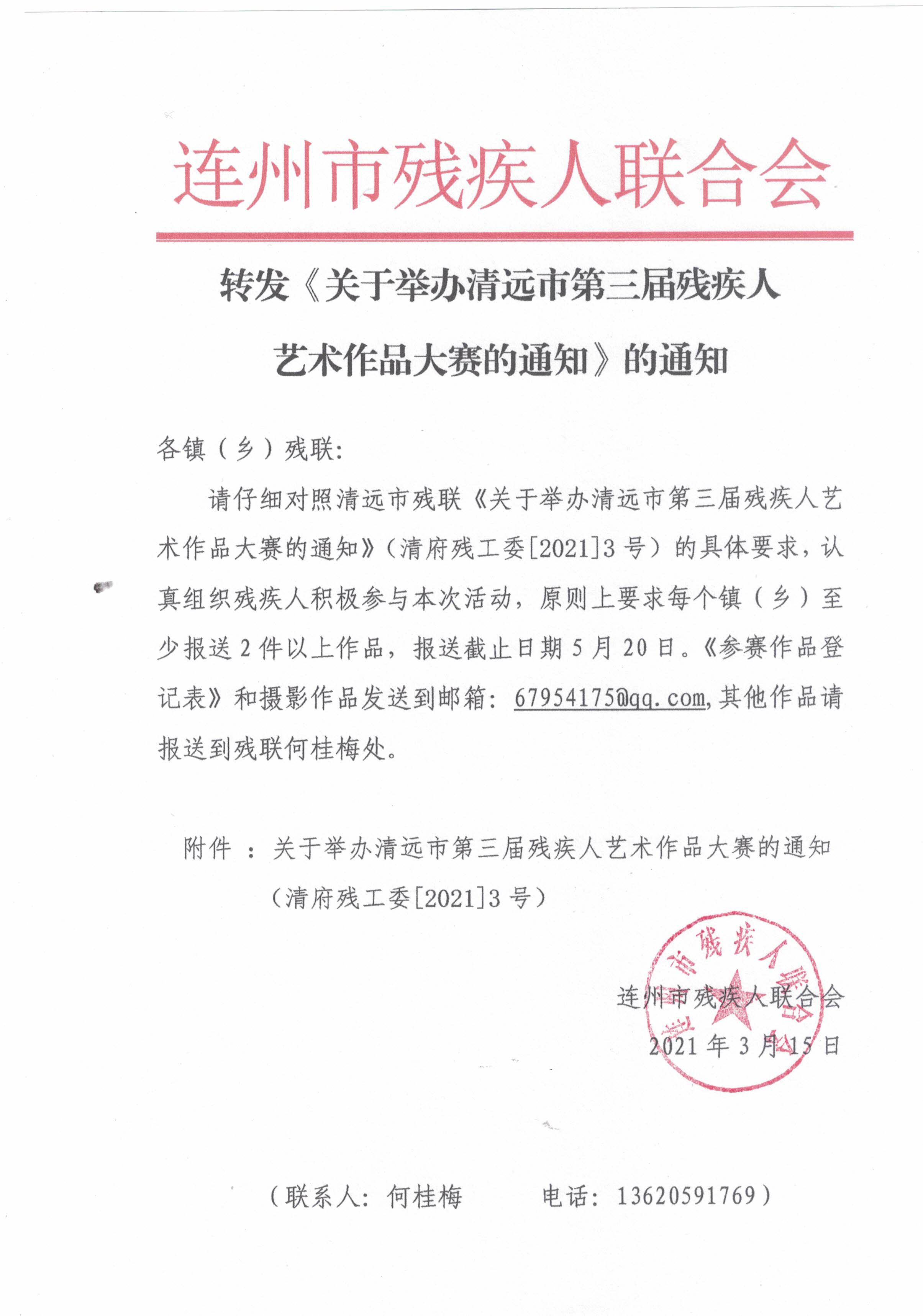 附件 :關(guān)于舉辦清遠(yuǎn)市第三屆殘疾人藝術(shù)作品大賽的通知(清府殘工委[2021]3號)