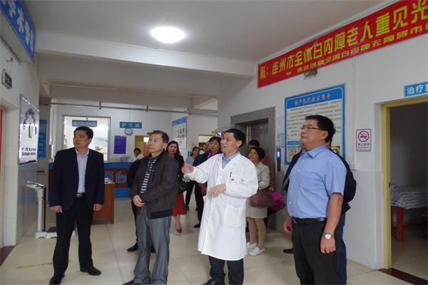 圖為執(zhí)法檢查組現(xiàn)場了解連州市殘疾預(yù)防白內(nèi)障防治情況
