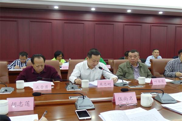 圖為清遠(yuǎn)市人大常委會副主任伍文超(圖中)聽取清遠(yuǎn)市殘聯(lián)理事長麥永聯(lián)(右一)介紹0-6歲殘疾兒童搶救性工作