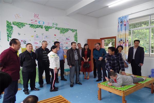 圖為執(zhí)法檢查組到殘疾人康復(fù)中心視察康復(fù)開展情況