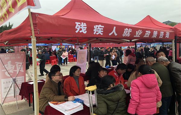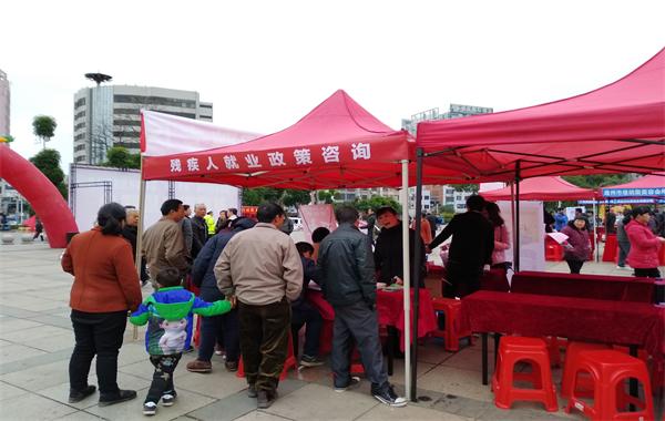2月13日上午,清遠市2019年“南粵春暖”暨精準扶貧連陽片區(qū)現(xiàn)場招聘會在連州市文化廣場舉行,清遠市殘聯(lián)會同連州市殘聯(lián)到場設(shè)置殘疾人就業(yè)政策咨詢服務(wù)專區(qū),會同清遠市15間和連州市10間設(shè)置殘疾人崗位企業(yè)進行就業(yè)招聘。