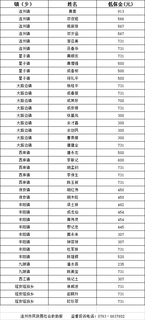 2024年7月新增低保對象名單
